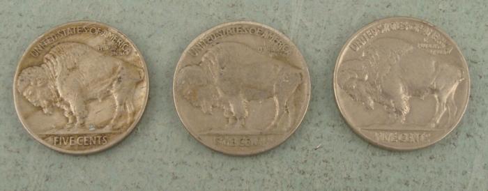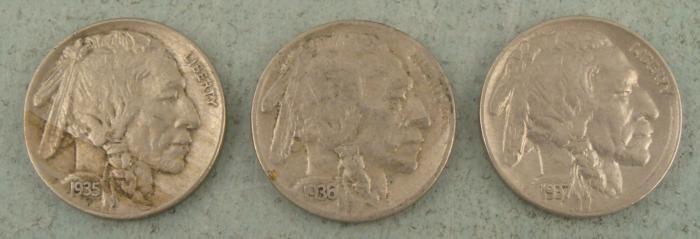3 High Grade Buffalo Nickels 1935, 1936, 1937