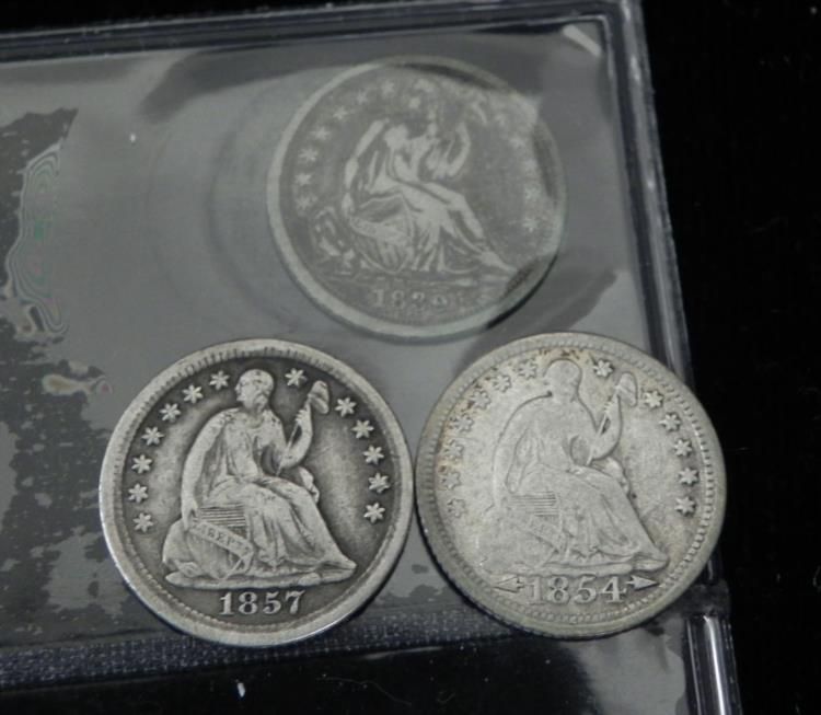 3 Different Date Seated Liberty Half Dimes * Dates: 1839 (sealed), 1854, 1857Condition: High Grade