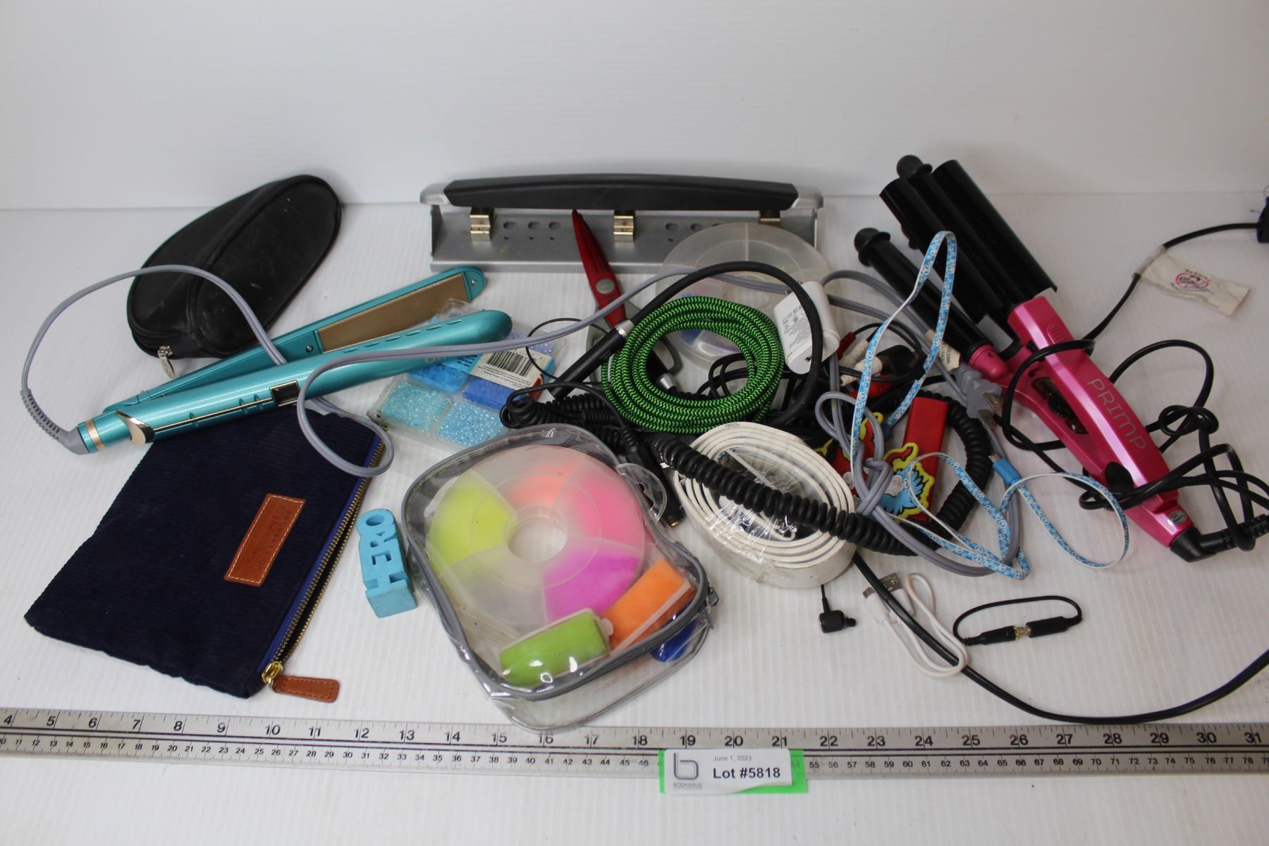 3 Hole Punch - (2) Curling Irons - Misc. Items