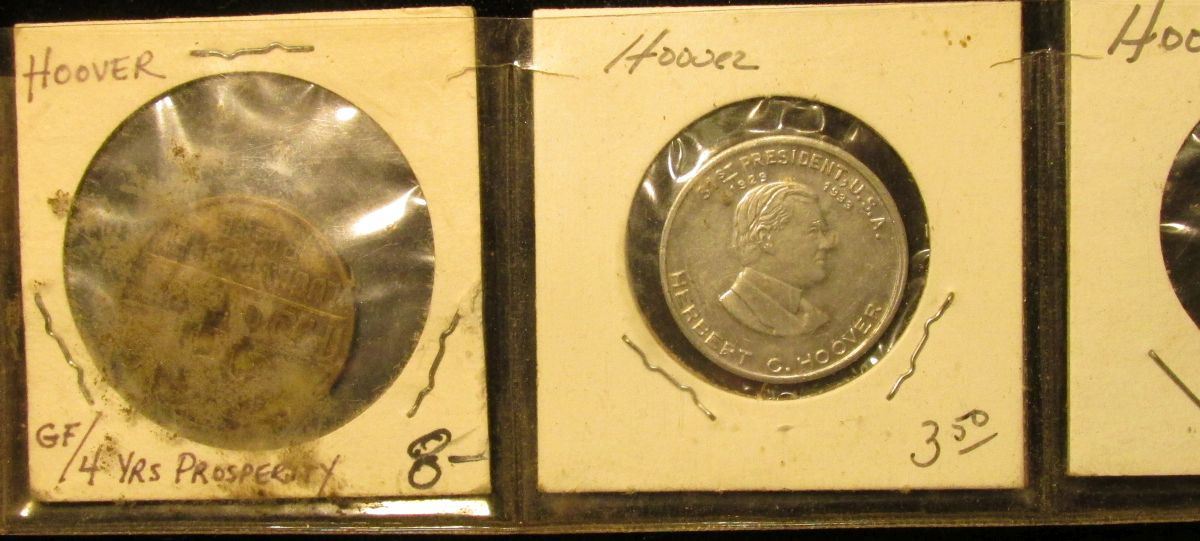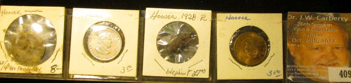 (3) Hoover Presidential Medals and an Elephant "Hoover" Pin-back. 'Doc' valued this group at over $40.00.