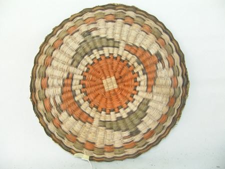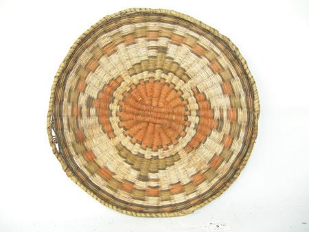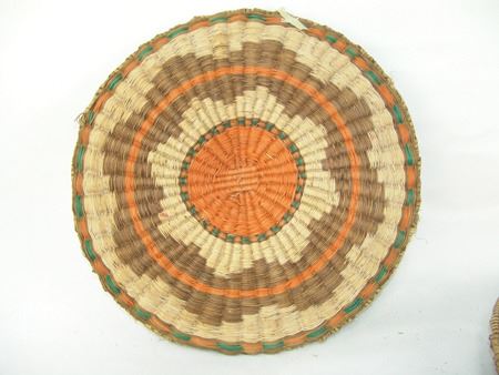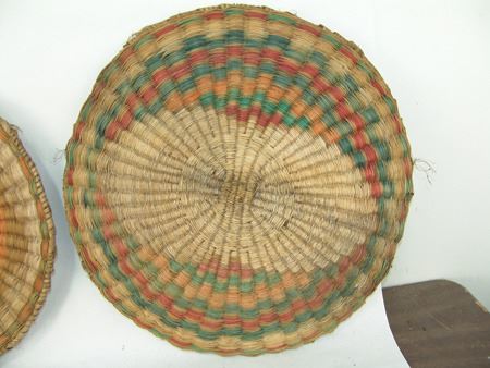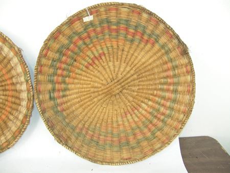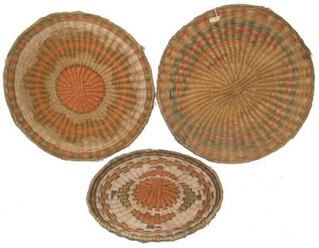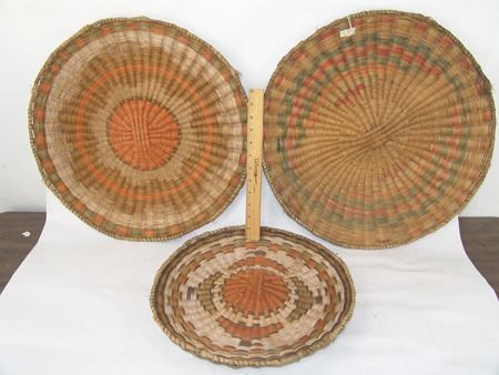 Early 1900s, Collection of three classic old wicker plaques, all with great patina. All in good condition, one with minor rim damage. 14", 18-1/2", 19"