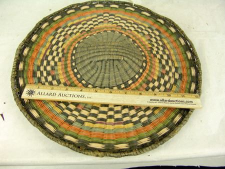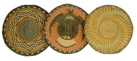 Early/Mid 1900s, Collection of three great wicker weave 3rd Mesa plaques, two with geometric designs, one with a beautiful eagle. All in very good condition and with great patina. Largest 13"
