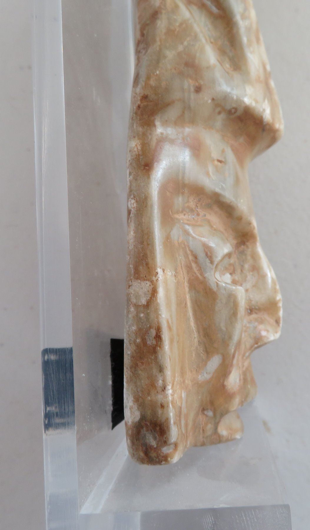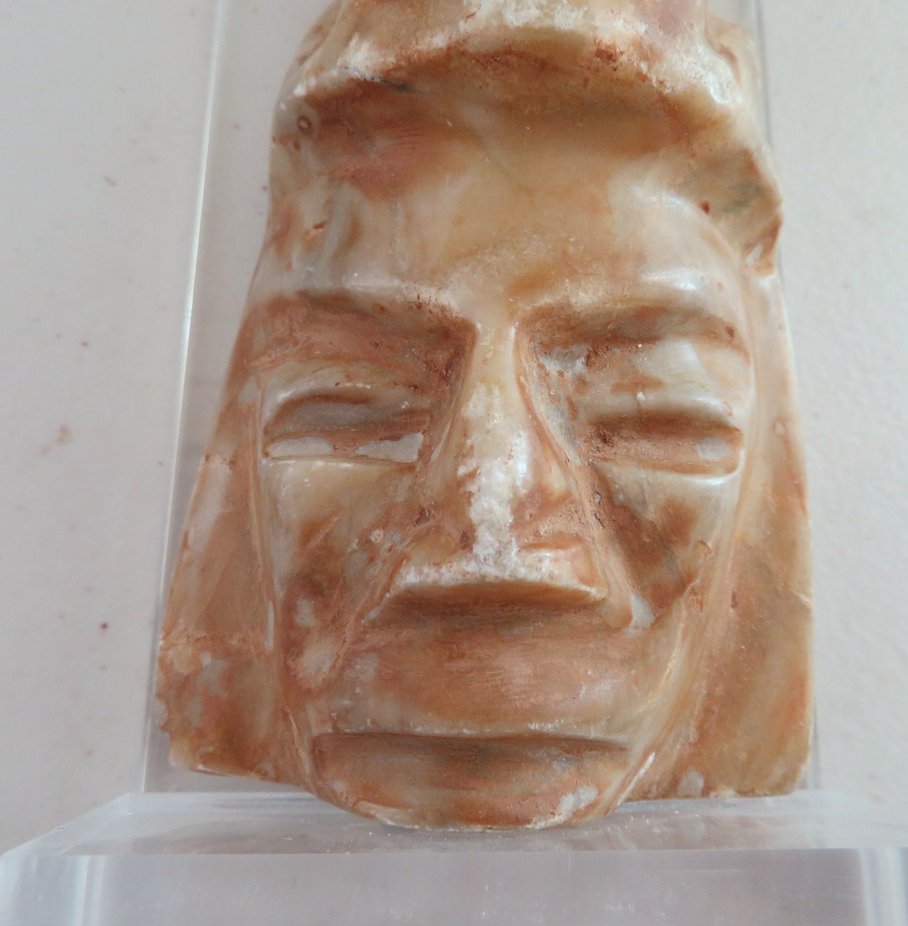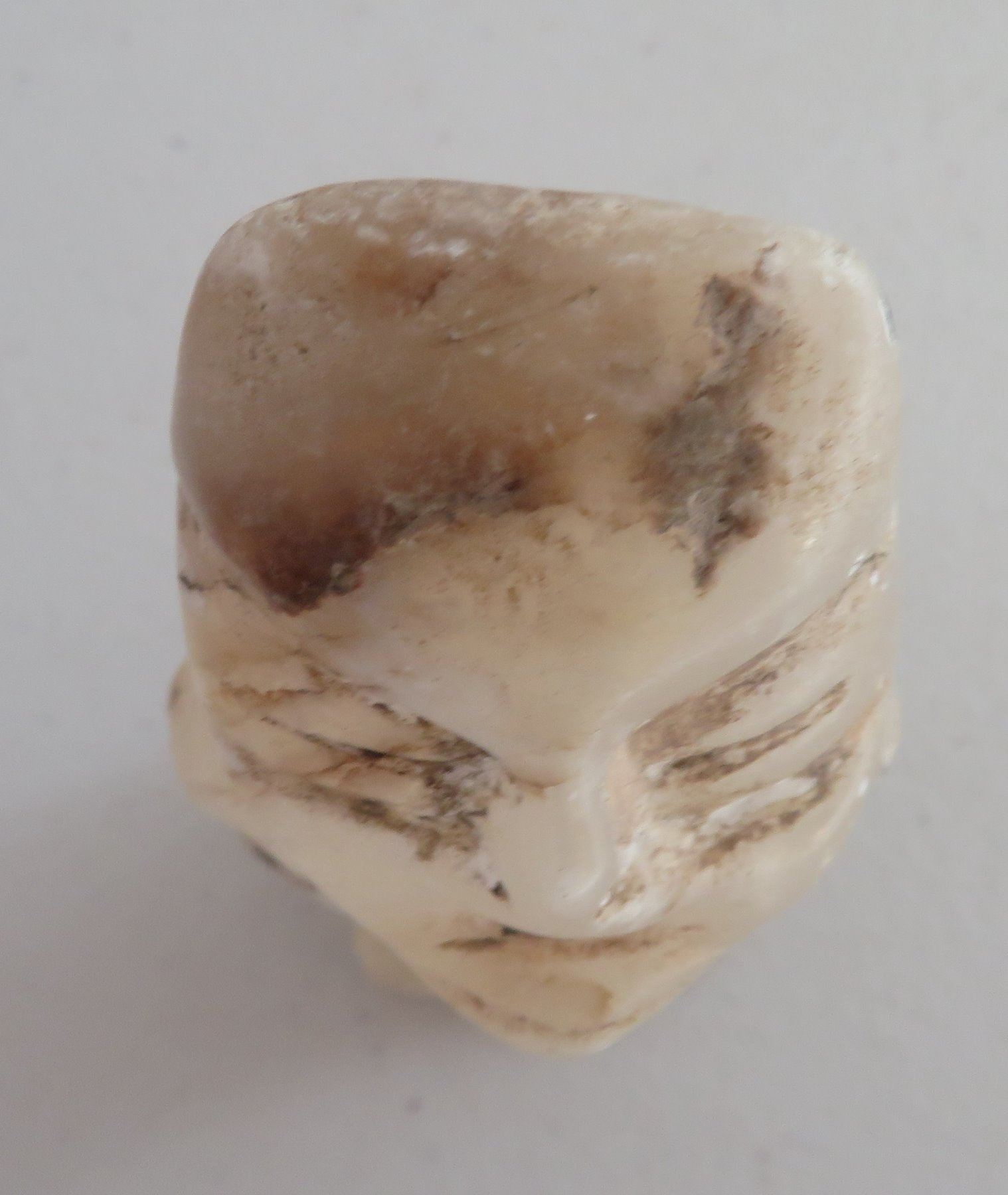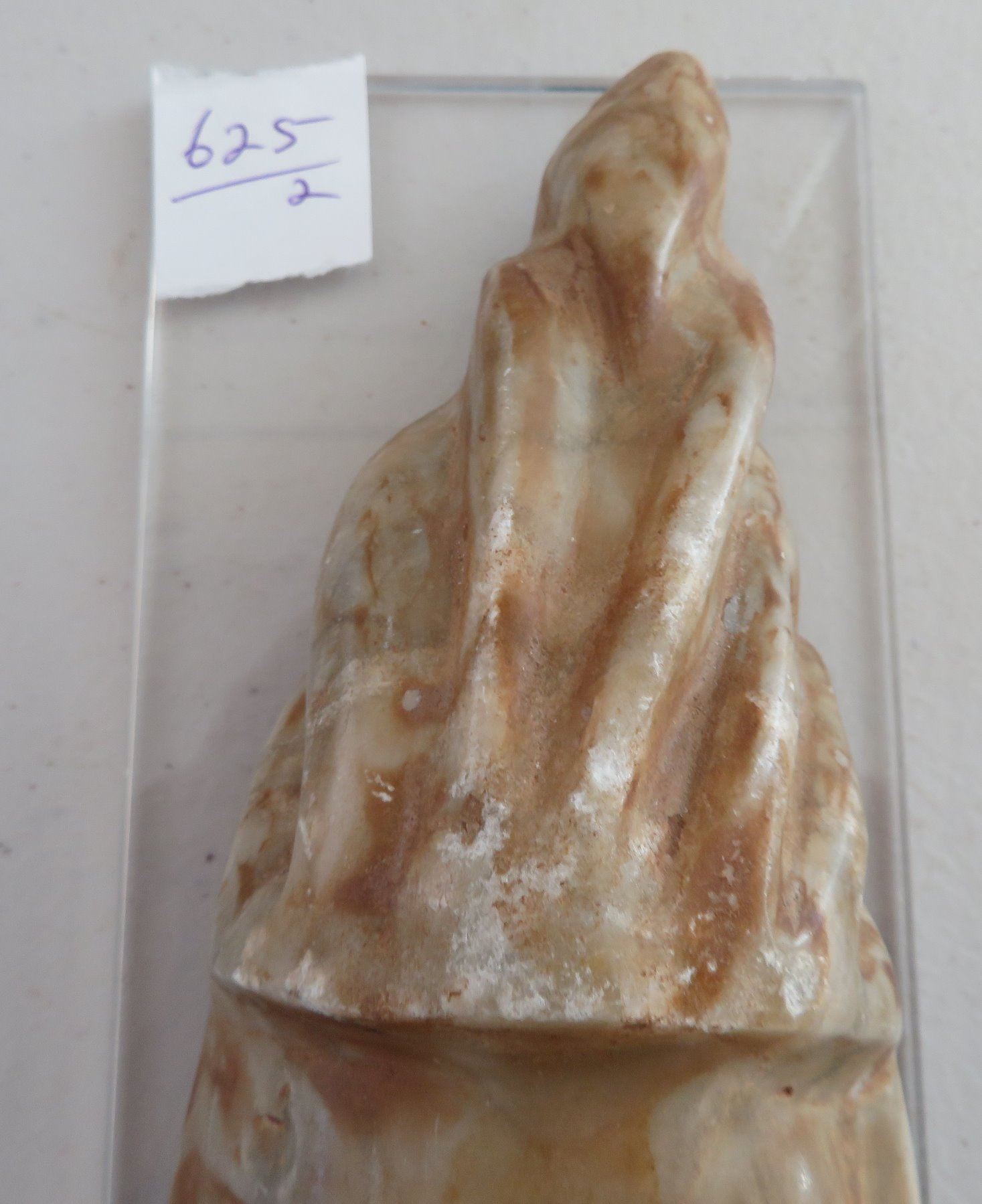 3 Human Figures, pre-Columbian-style. Made of clay, crystal and alabaster, the largest measures 7". Central Mexico. Condition: Head broken on one, see images. Shipping: $32.50 w/insurance and signature, due to weight.