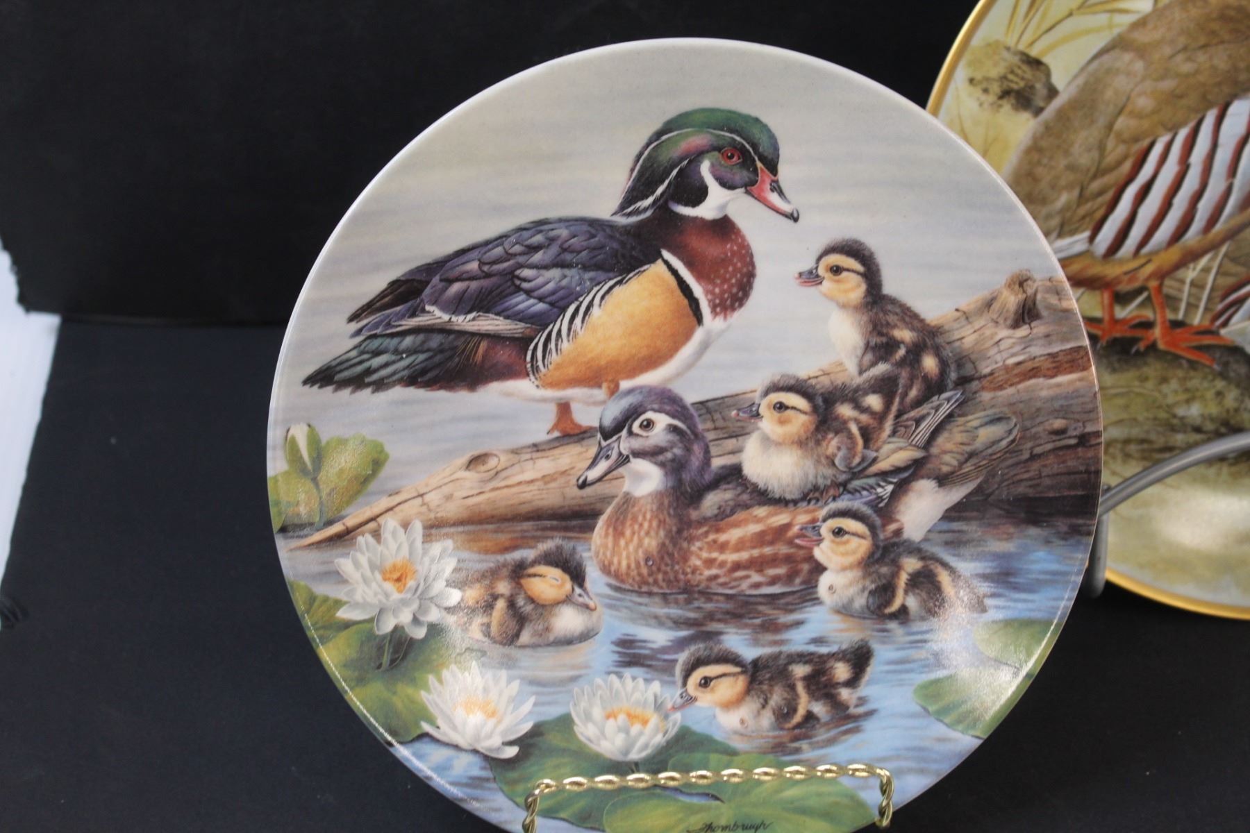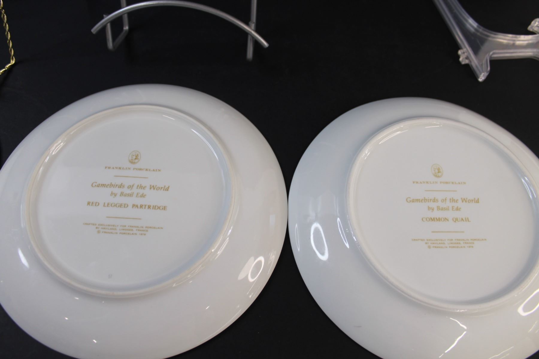 (3) Hunting Birds Collector Plates: (2) Franklin Porcelain & (1) Knowles: Stands Included