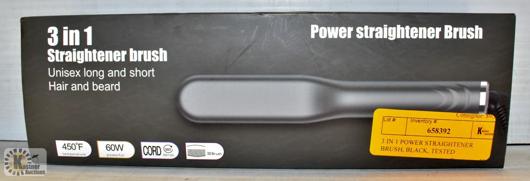 3 IN 1 POWER STRAIGHTENER BRUSH, BLACK, TESTED