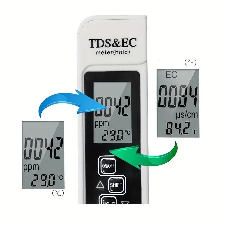 MEASURES THREE IMPORTANT PARAMETERS OF WATER QUALITY TDS, EC(ELECTRICAL CONDUCTIVITY), AND TEMPERATURE ALL IN ONE DEVICE. IDEAL FOR TESTING WATER QUALITY IN AQUARIUMS, SWIMMING POOLS, SPAS, HYDROPONIC SYSTEMS, AND MORE. COLORS MAY VARY(BLUE OR WHITE)
