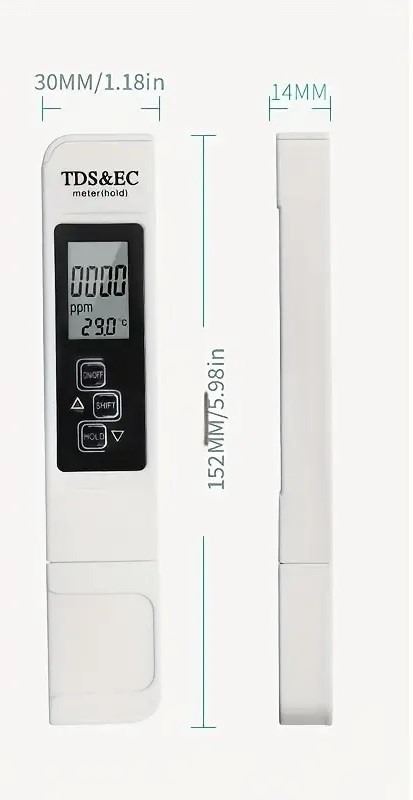 MEASURES THREE IMPORTANT PARAMETERS OF WATER QUALITY TDS, EC(ELECTRICAL CONDUCTIVITY), AND TEMPERATURE ALL IN ONE DEVICE. IDEAL FOR TESTING WATER QUALITY IN AQUARIUMS, SWIMMING POOLS, SPAS, HYDROPONIC SYSTEMS, AND MORE. COLORS MAY VARY(BLUE OR WHITE)