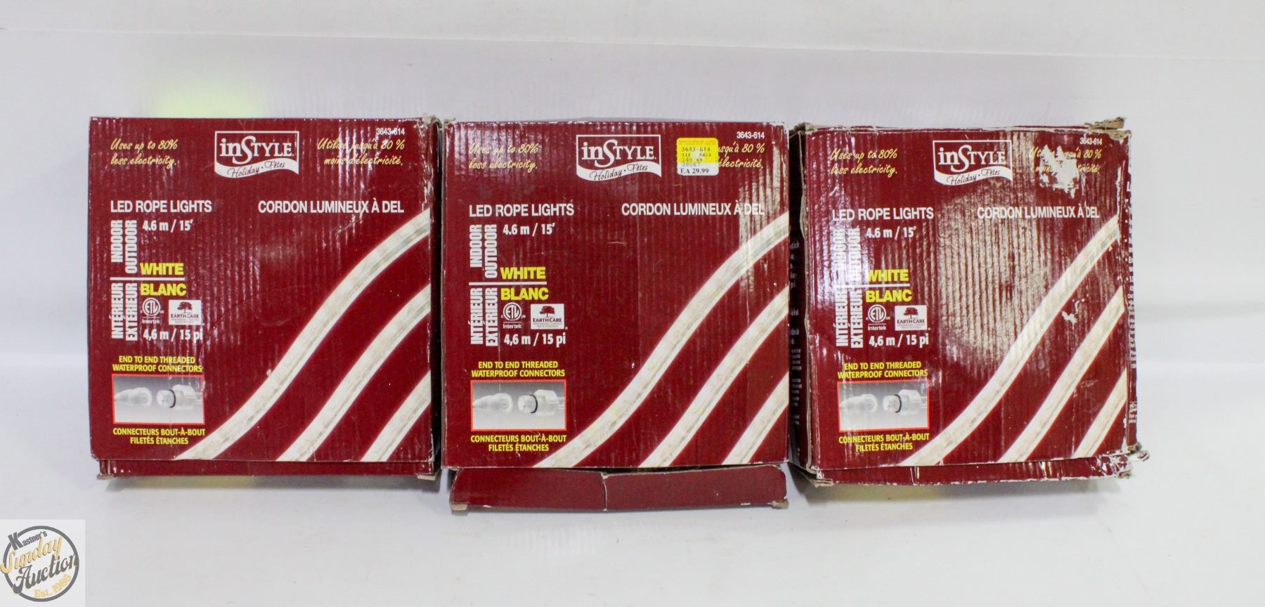 3 INSTYLE LED WHITE ROPE LIGHTS 15' LONG