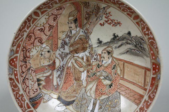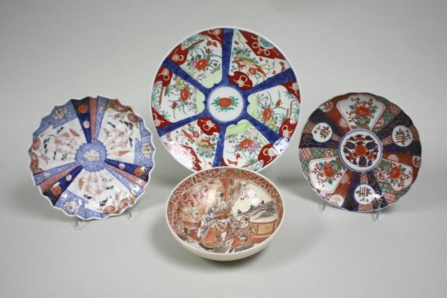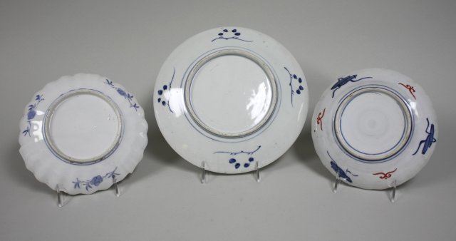 Largest plate approx. 11" D. Bowl approx. 2.5" x 7.5" D. Some loss to gilding. Minor chips in one plate.