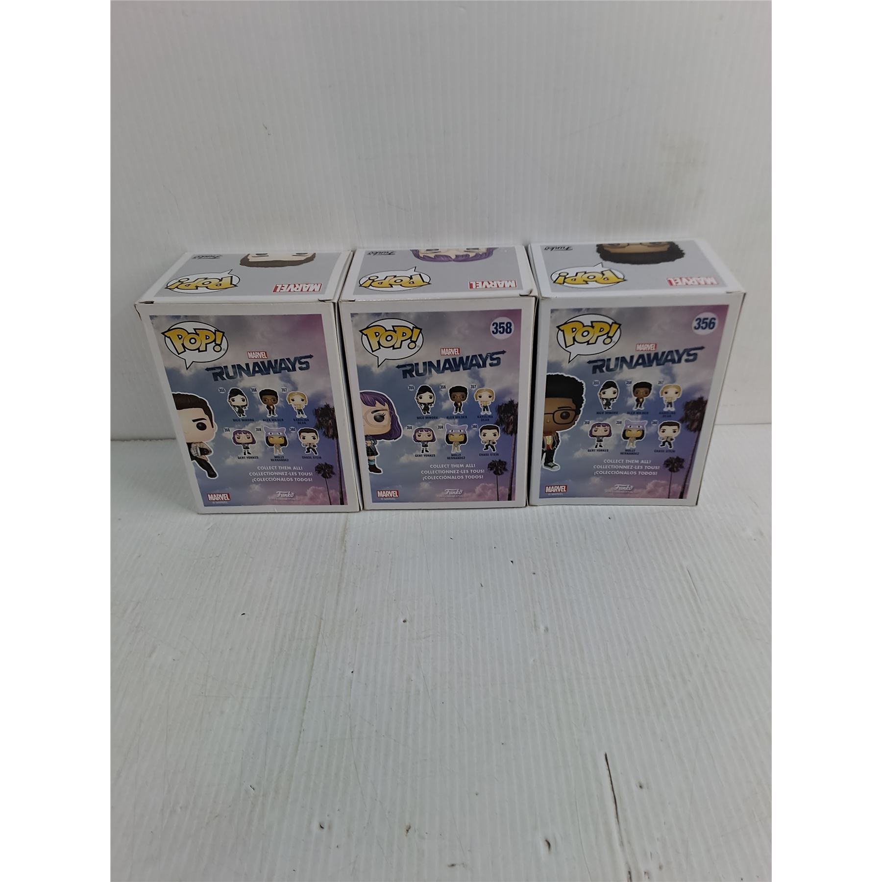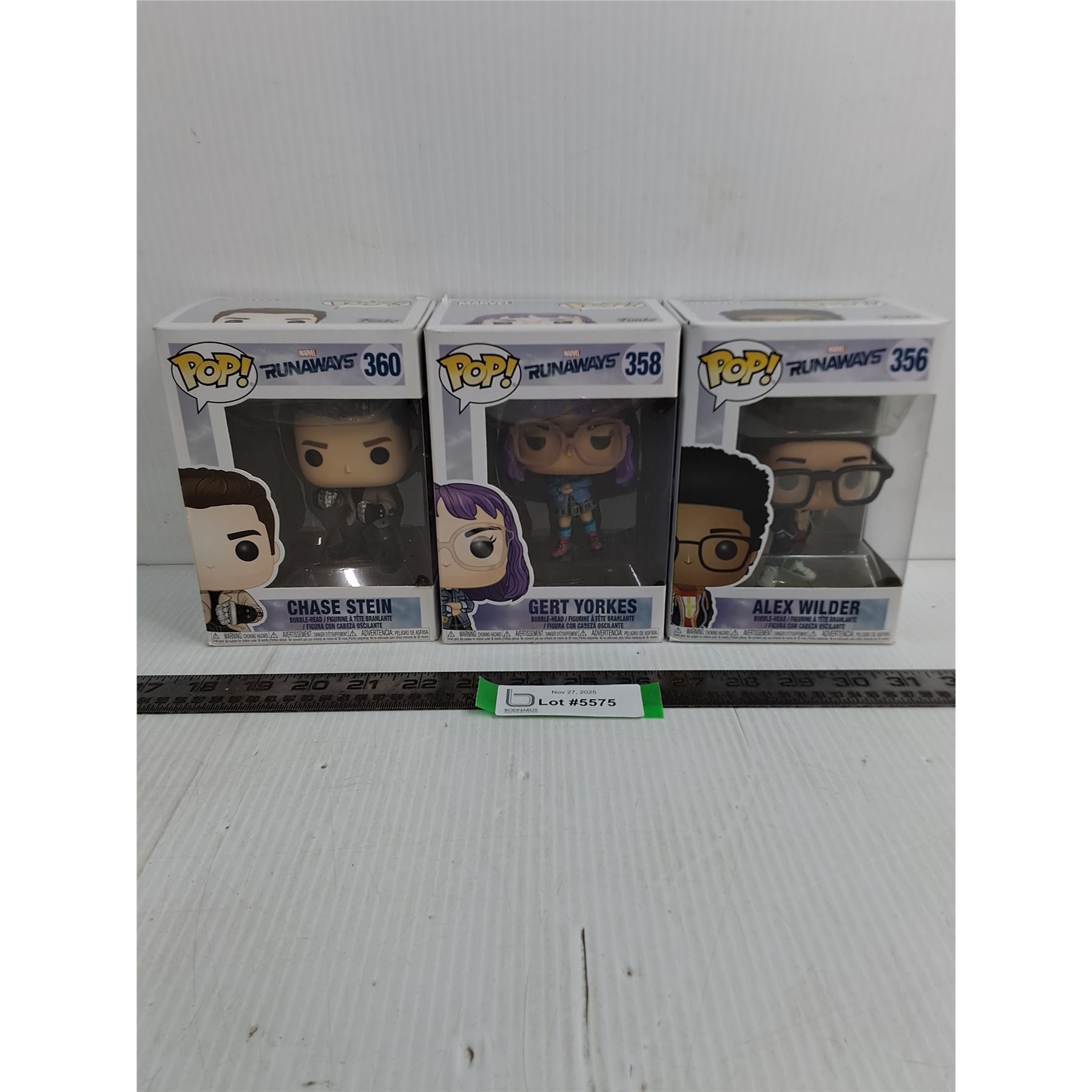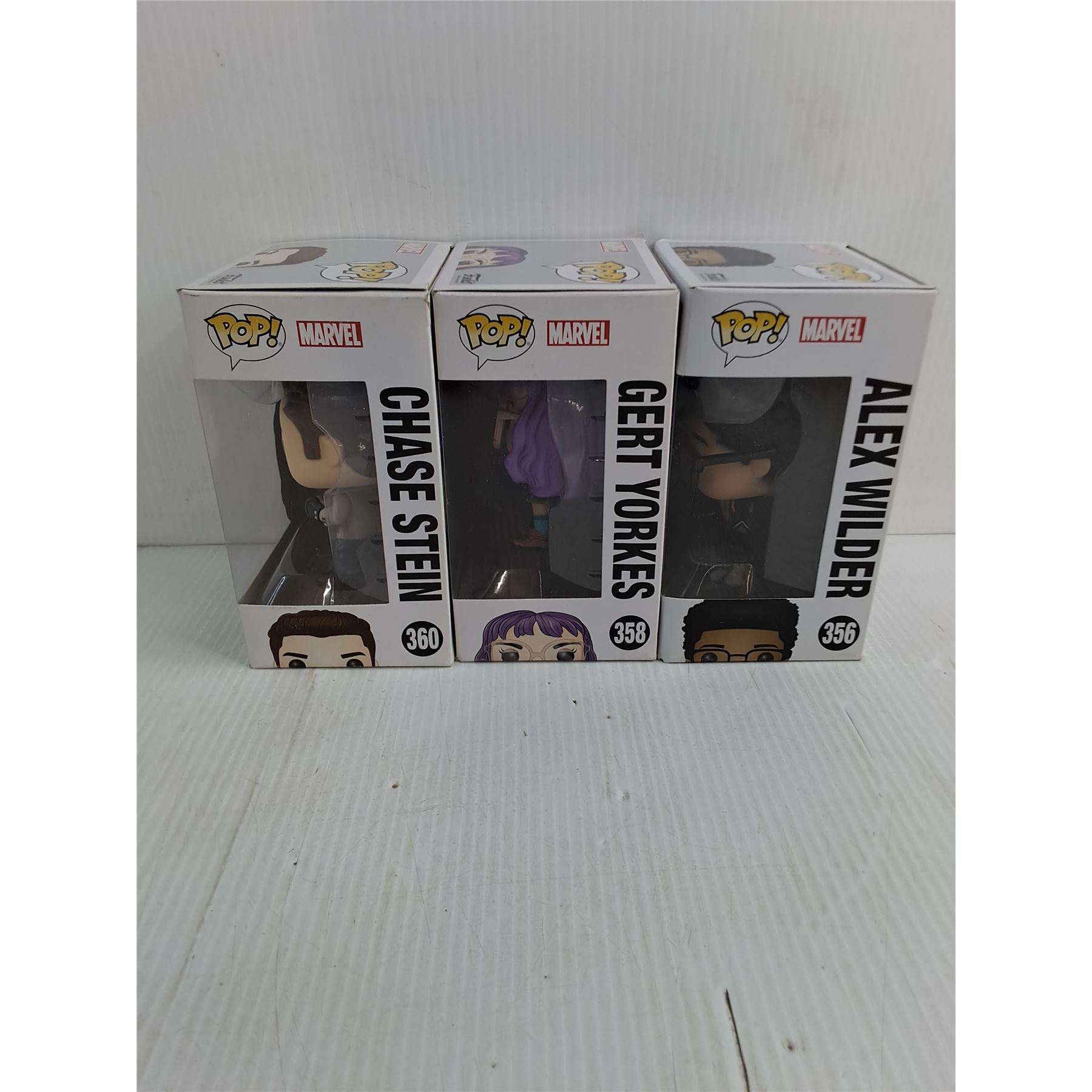 (3) In Box Funko Pop Marvel Characters (Chase Stein, Gert Yorkes, Alex Wilder)
