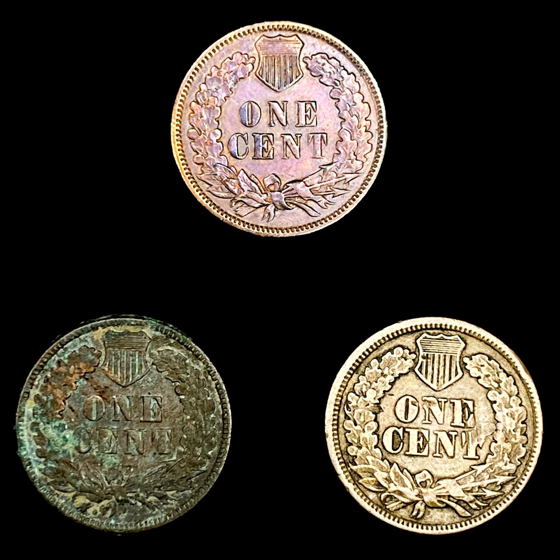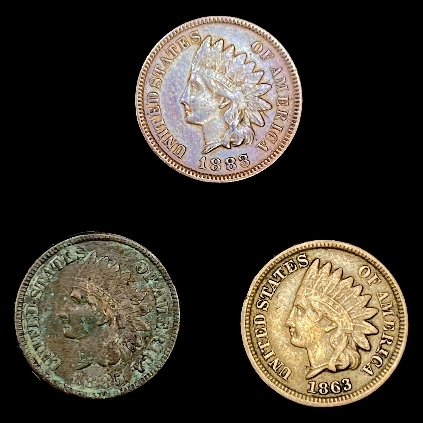 (3) Indian Head Cents (1863, (2) 1883) HIGH GRADE