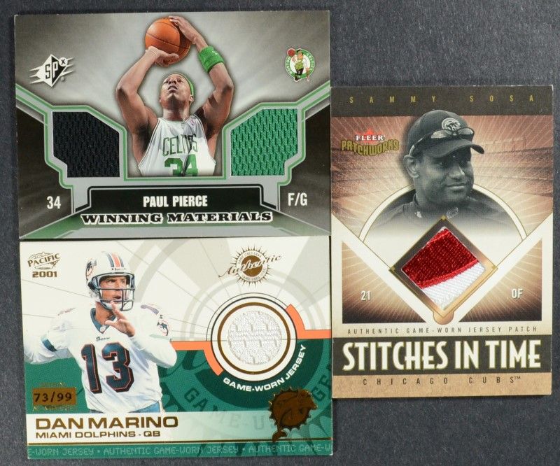 ALL MINT, ALL GAME WORN, DAN MARINO, PAUL PIERCE, SAMMY SOSA, EST $60- $70