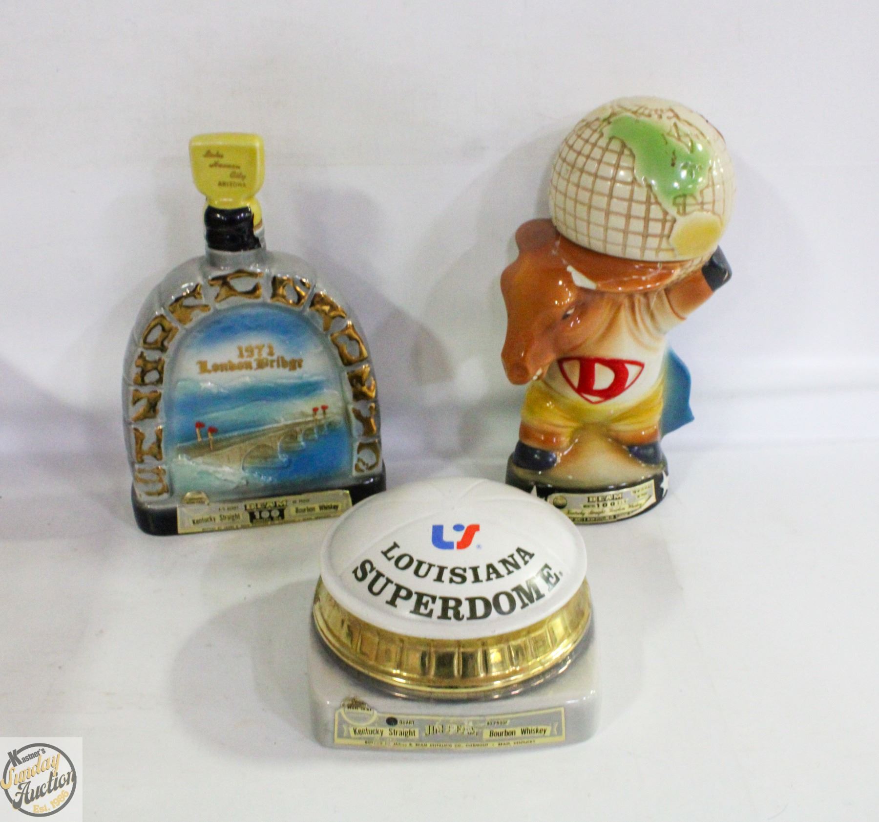 3 JIM BEAM AMERICAN AND LONDON BRIDGE DECANTERS