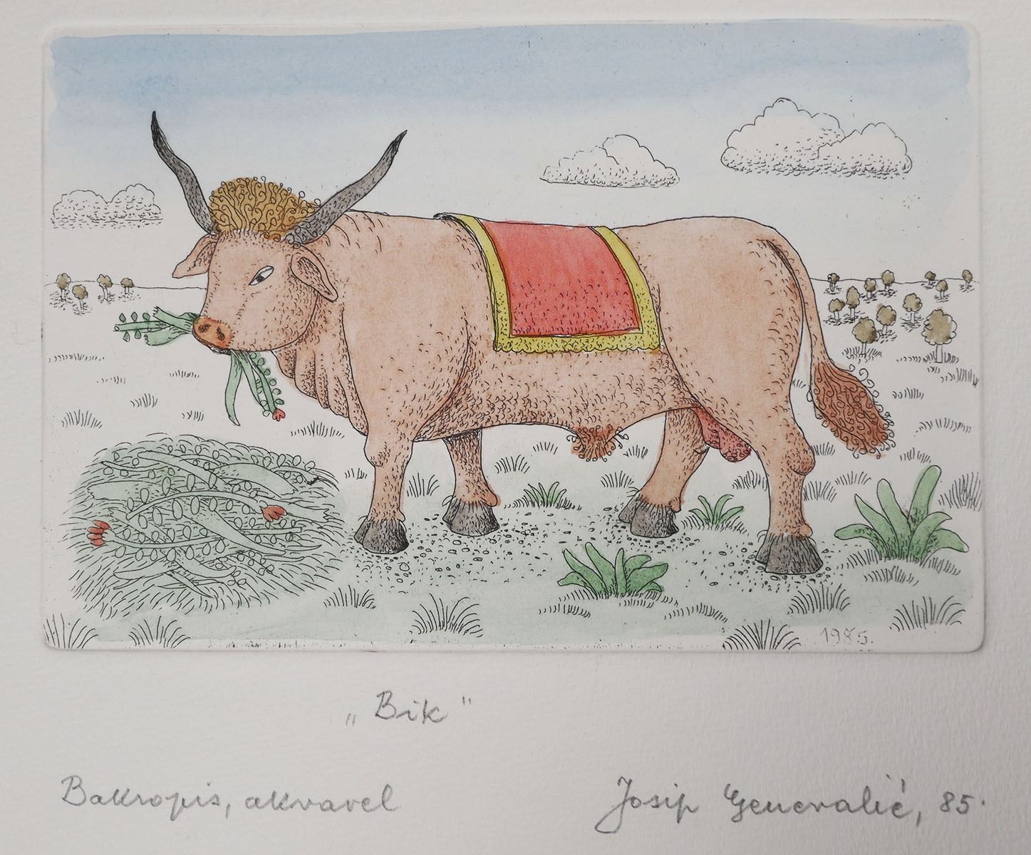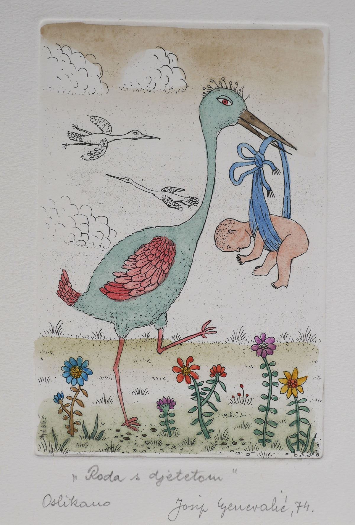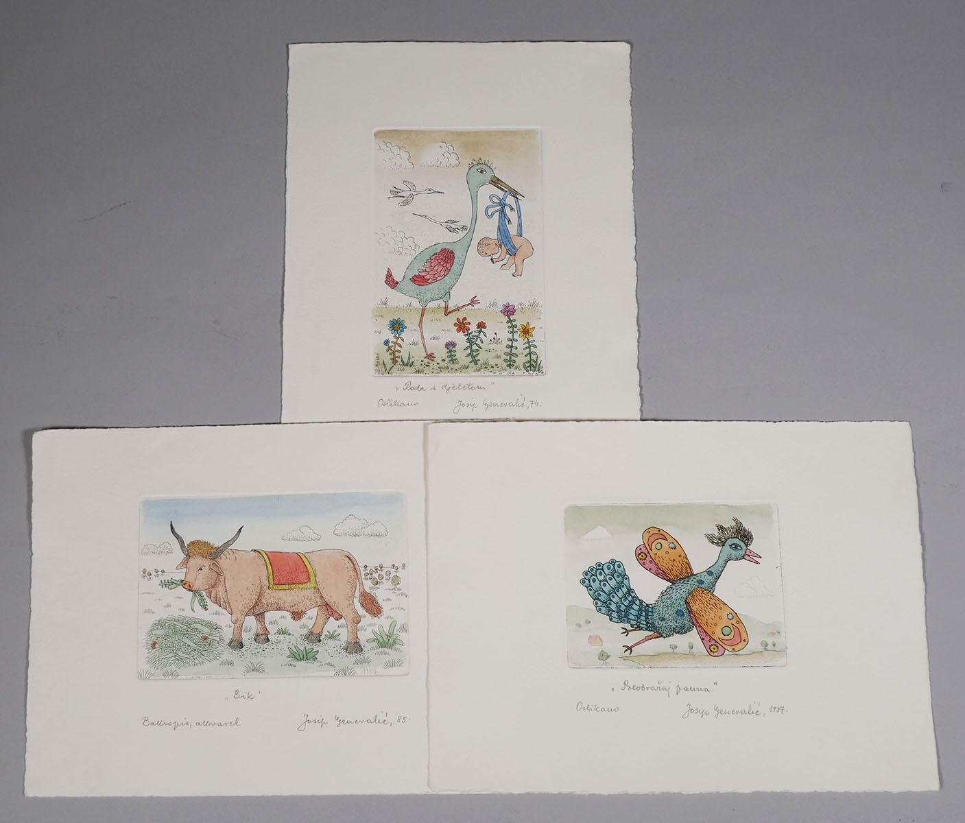 Group of three hand colored etchings by Josip Generalic (Croatian, 1936-2004). Each pencil signed and dated to 1974. Sheet size is 8" x 10 1/2". Excellent condition.