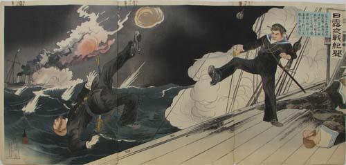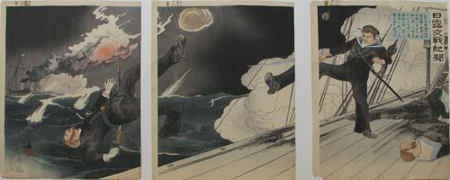 3 Japanese Russo Japanese War color woodblocks