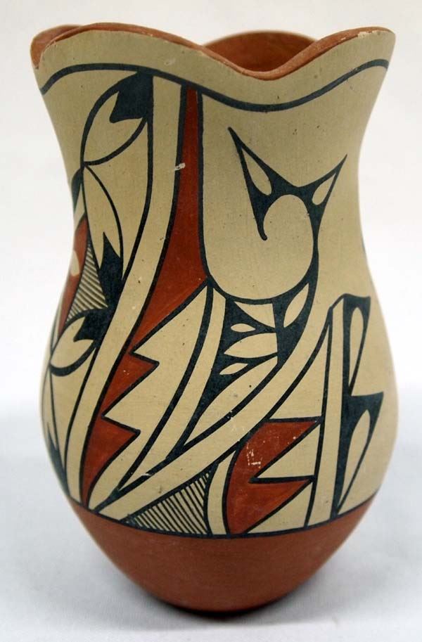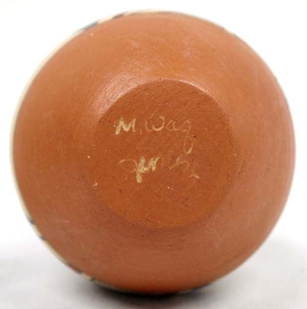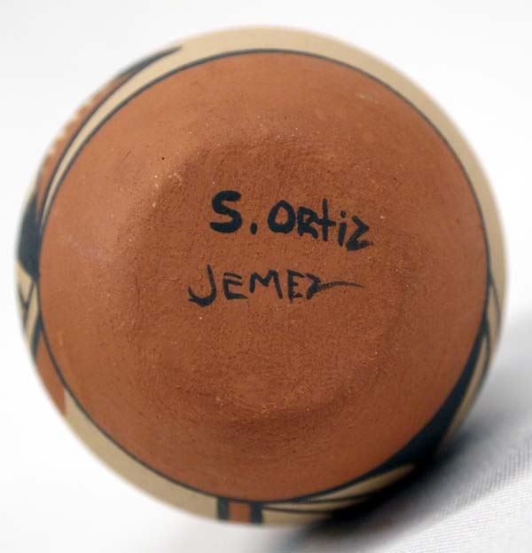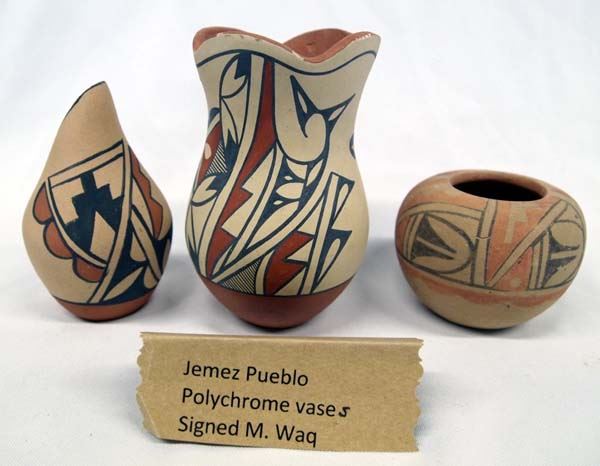 3 Native American Jemez New Mexico Pueblo Pottery Jars, largest measures 3.5'' x 6'', one by A. Loretto, one by M. Waquiu, and the other by S. Ortiz