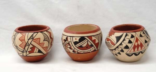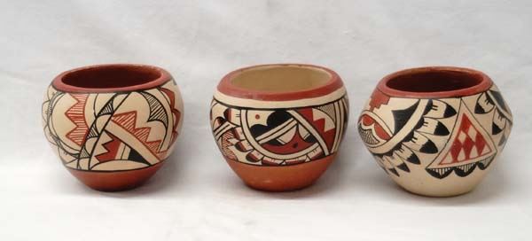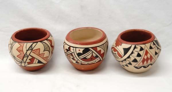 3 Native American Jemez Polychrome Pottery Bowls, largest measures 3.5''H x 4.5''D, 2 are by Mary S. Toya and 1 by L.C. Toledo