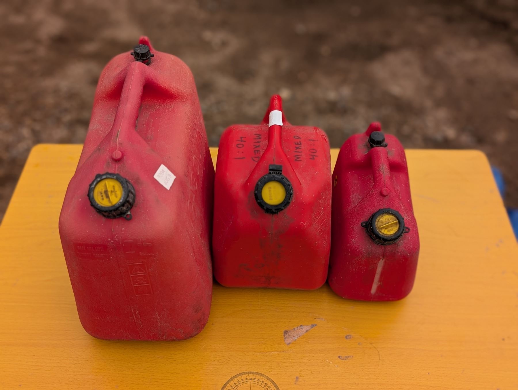 (3) Jerry Cans w/ Covers (Different Sizes 20/10/4.7 Litres)