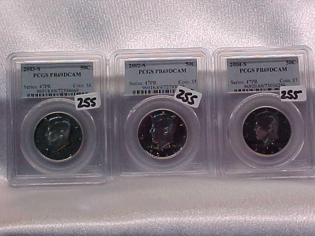 3 Kennedy Half $ all PCGS PR69 DCAM: 2002S, 2003S, 2004S