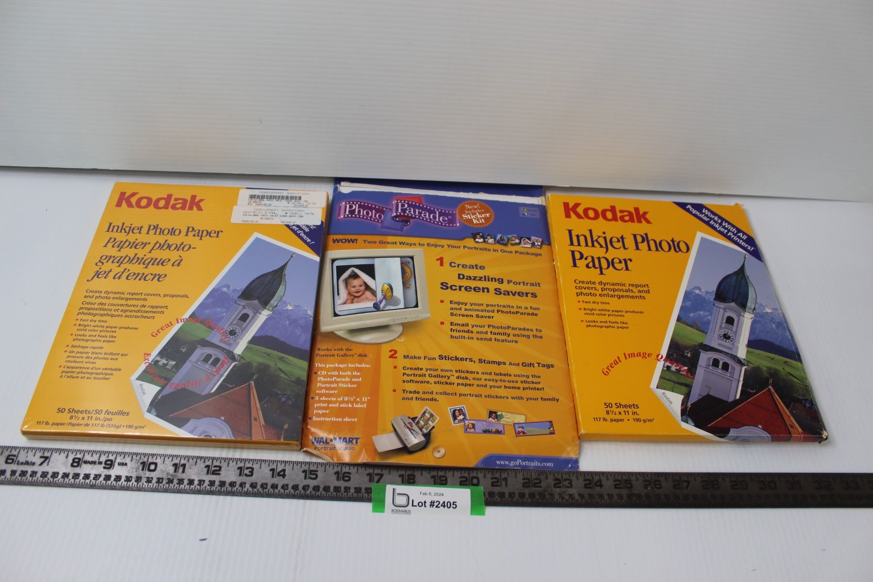 (3) Kodak Photo Paper: Sticker Kit, InkJet Photo Paper (opened), Unopened InkJet Photo Paper