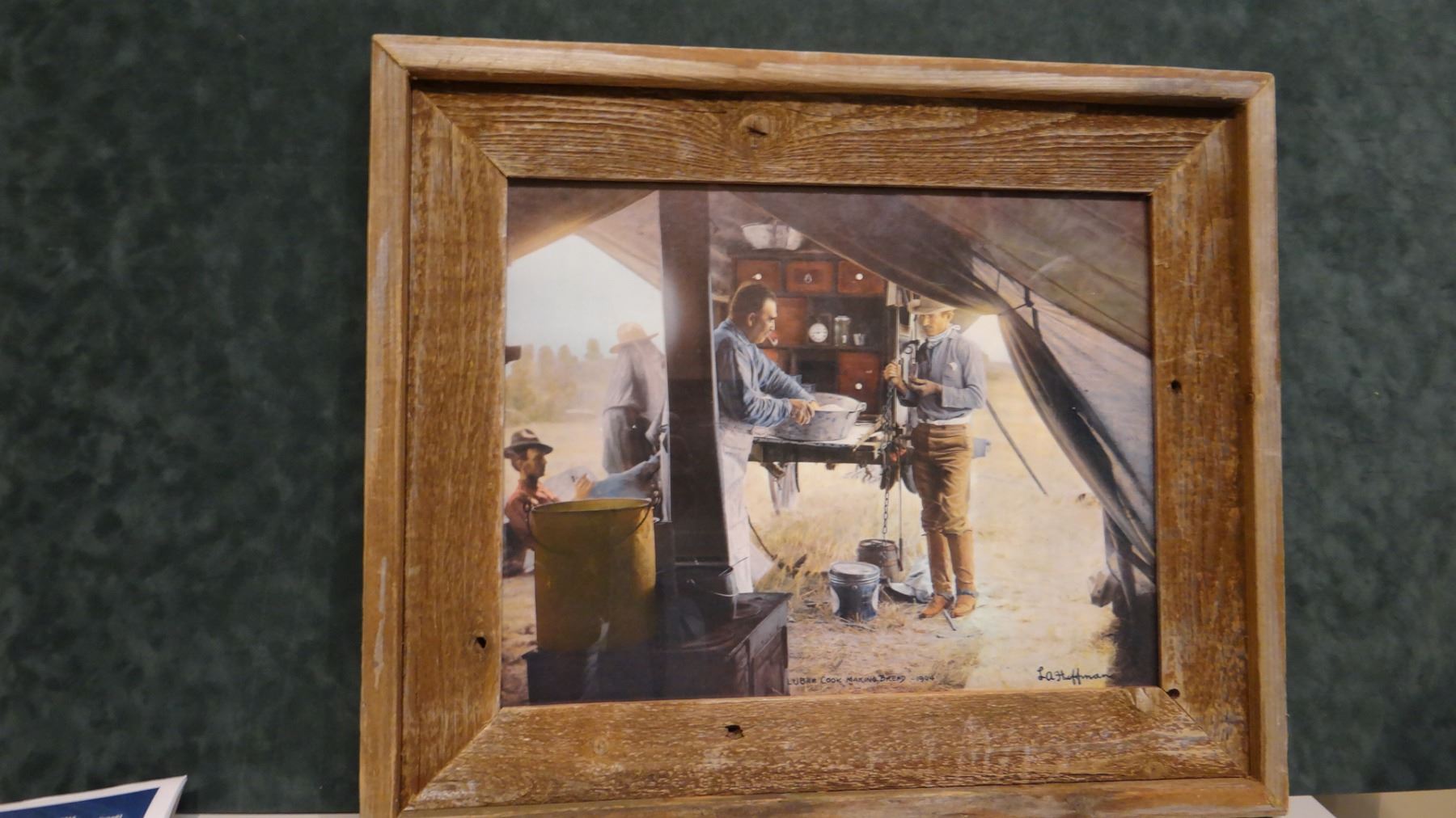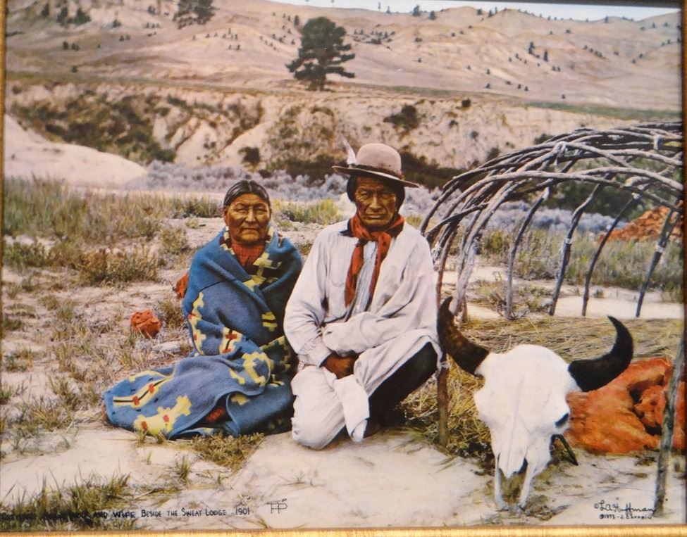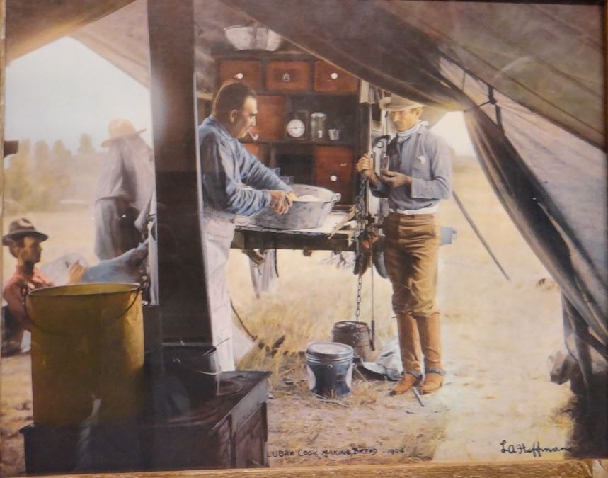 3 L. A. Huffman framed prints: Man on Hill and Wife; and Cheyenne Brave Wolf and Wife, LU Bar Cook Making Bread, 1904,both 10" x 12", tinted