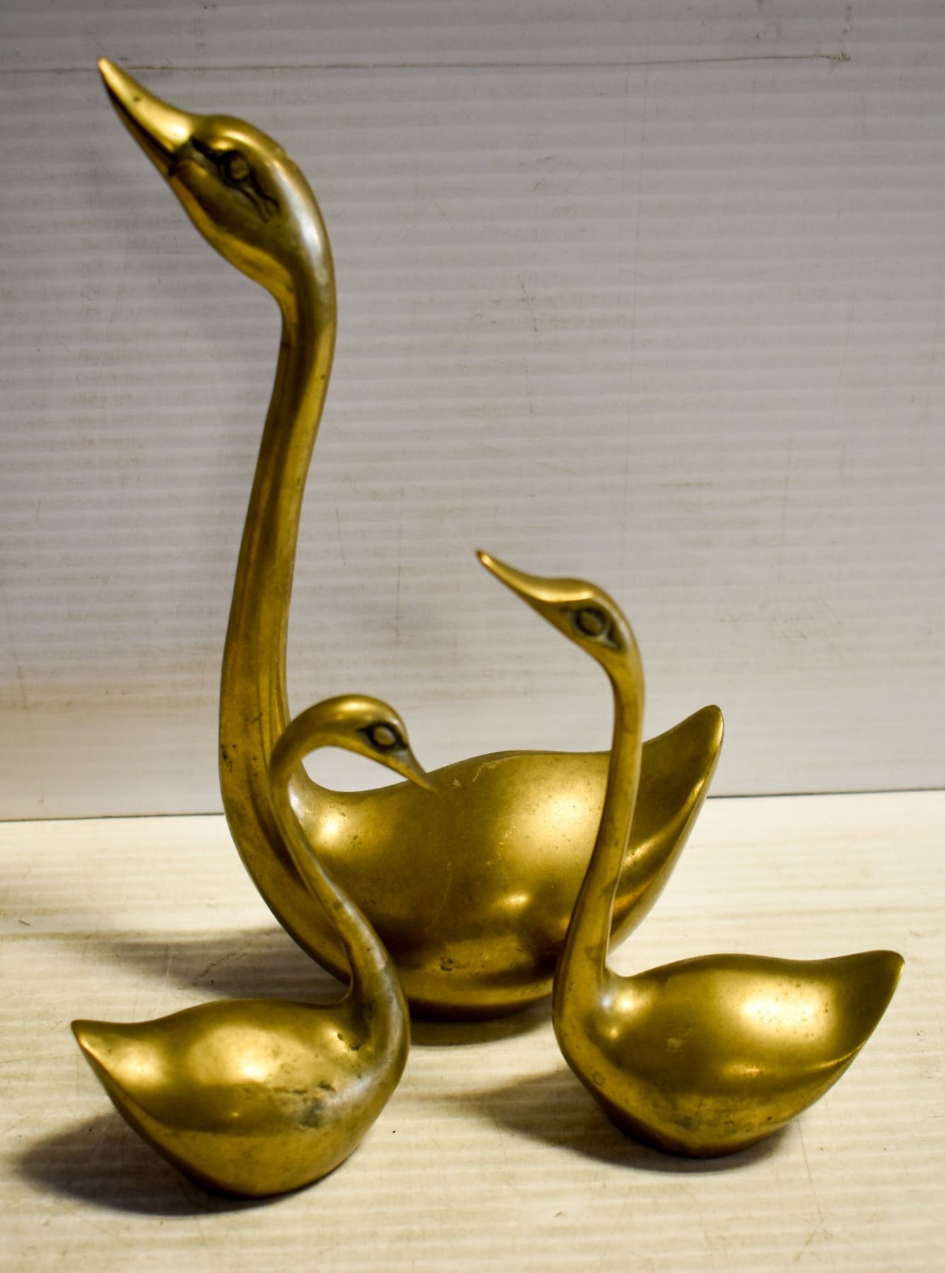 3 LARGE BRASS SWANS 3 TO 8 INCH