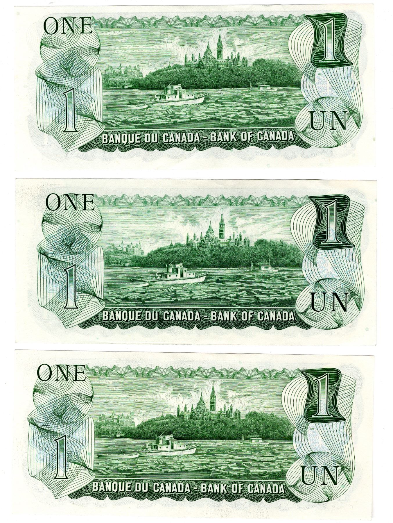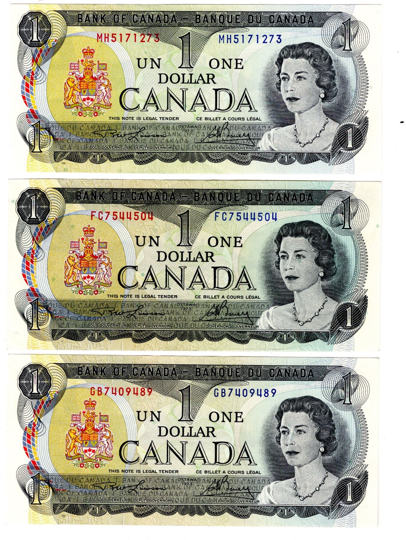 3, LAWSON/BOUEY 2 LETTER DOLLAR BILLS, 1973 UNCIRCULATED