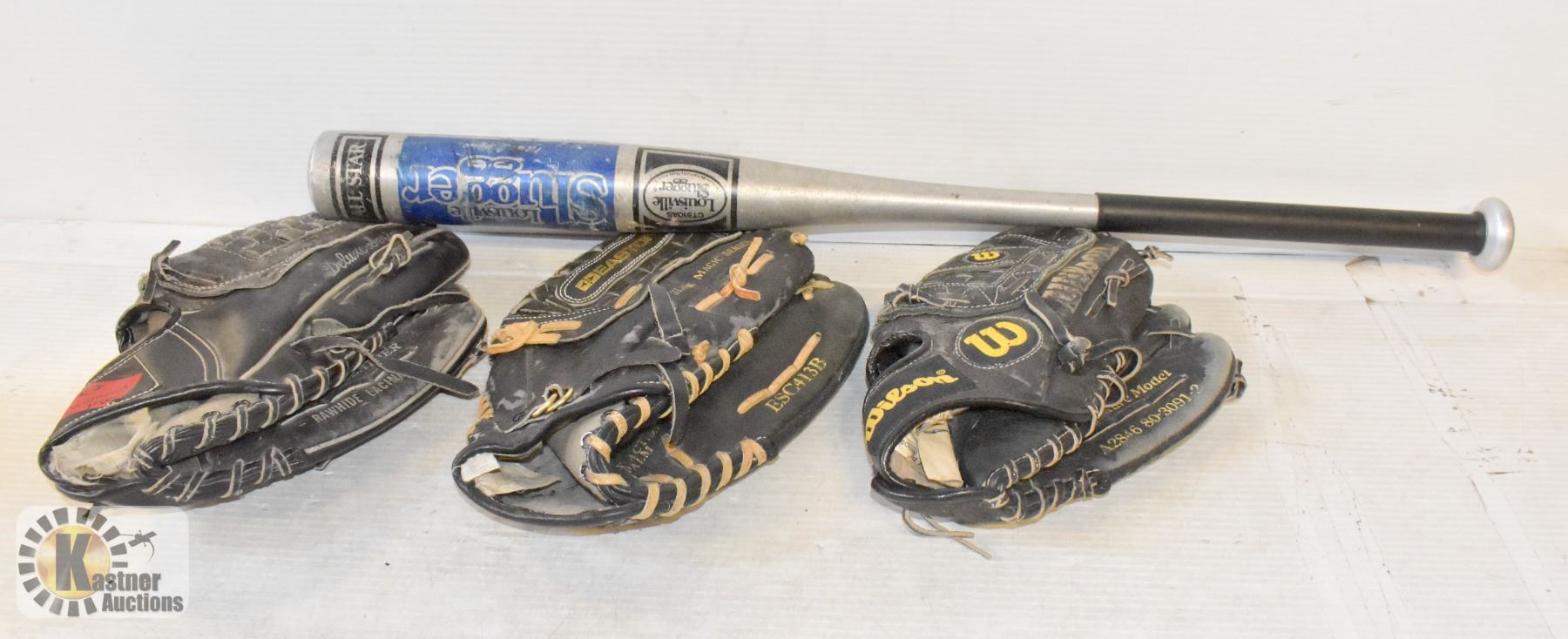 3 LEFT HAND BALL GLOVES WITH ALUMINUM BAT
