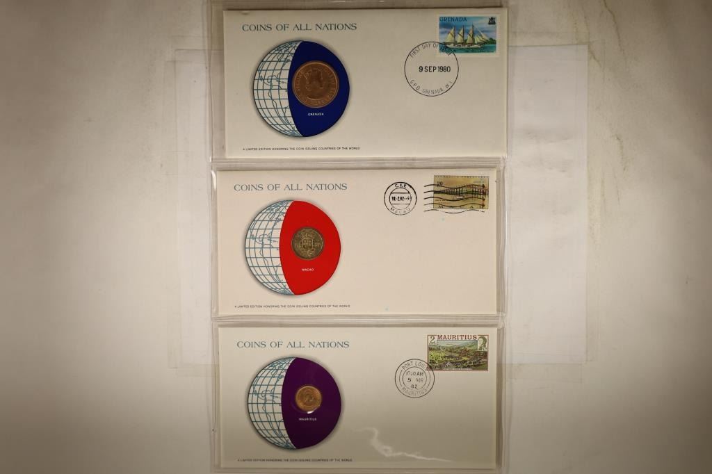 FRANKLIN MINT COIN COVERS, GRENADA, MACAO AND MAURITIUS