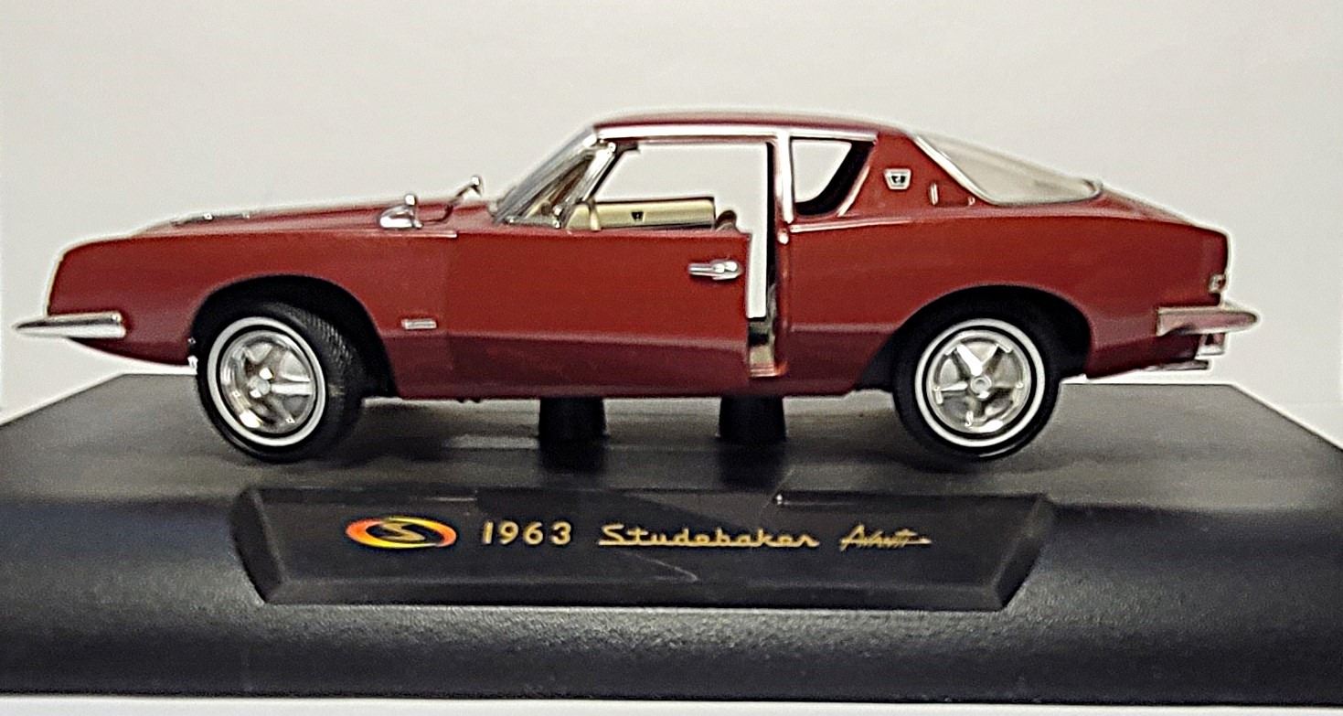 STUDABAKER FASTBACK MODEL WITH DISPLAY STAND, DOORS & HOOD THAT OPEN, IN ORIGINAL PACKAGING. COLLECTIBLES