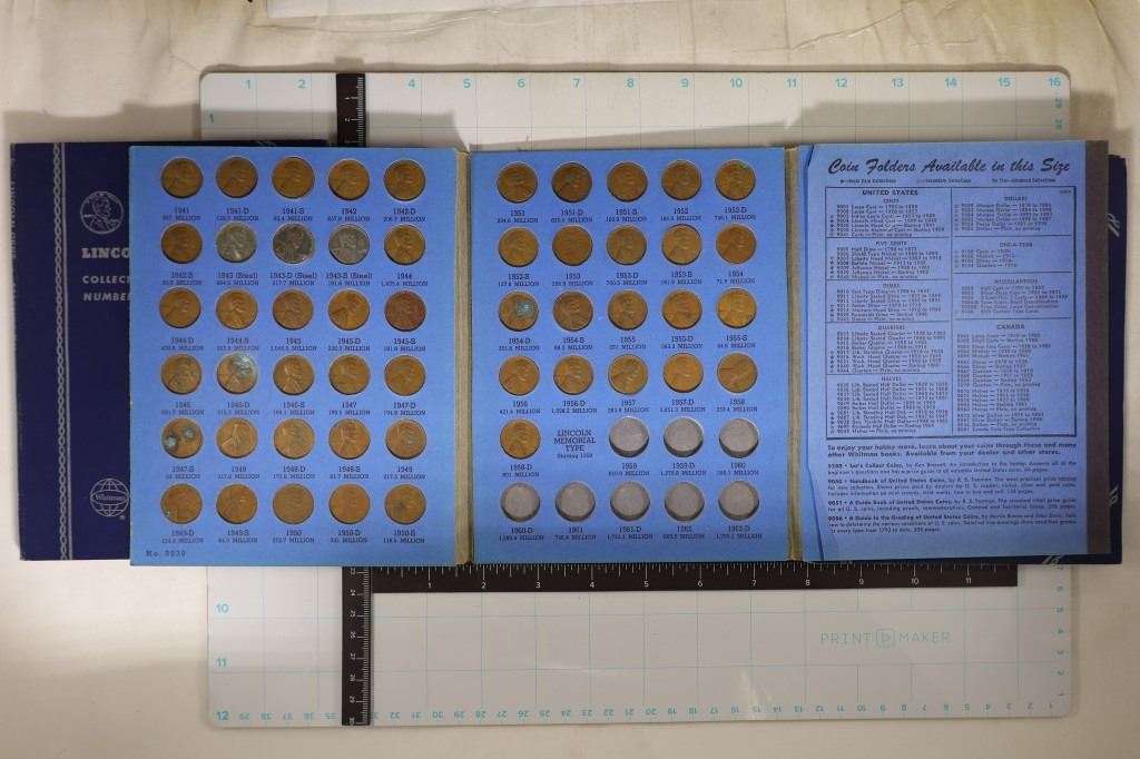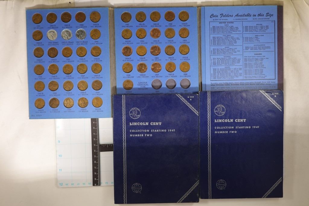 ALL WHITMAN FOLDERS. (153 COINS TOTAL) AS SHOWN, COUPLE OF THE ALBUMS HAVE UPSIDE COINS AS THEY ARE NOT THE CORRECT YEAR OR MINT MARK FOR THAT SLOT BUT STILL VERY CLOSE TO COMPLETE, ONE ALBUM HAS SOME RED UNC'S