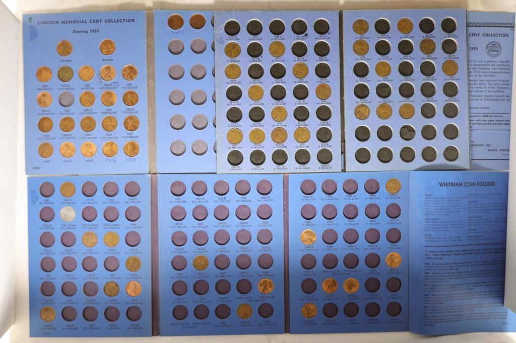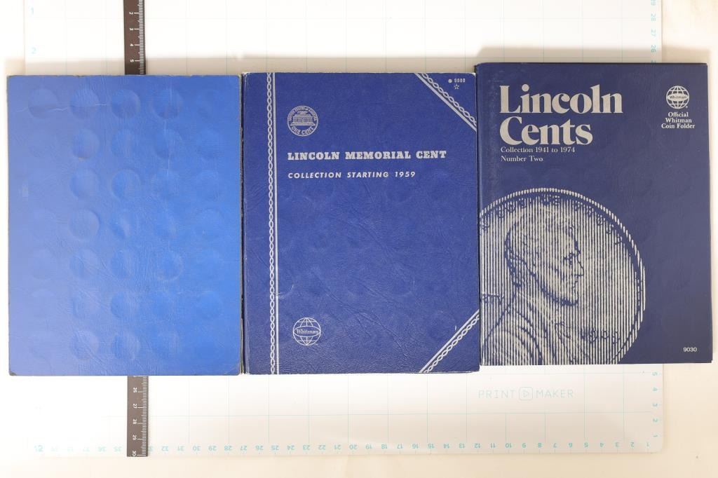 20 (1923-1941) WHITMAN ALBUM MISSING COVER, 17 (1941-1973) WHITMAN LINCOLN CENTS 1941 TO 1974 NUMBER TWO AND 23 (1959-1970) WHITMAN LINCOLN MEMORIAL CENTS STARTING 1959 (ALBUM HAS DATES WRITTEN IN INK INSIDE) NOT A