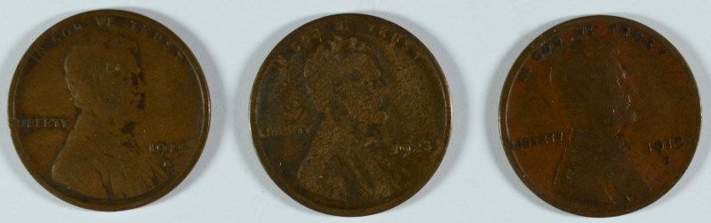 (3) LINCOLN CENTS (12-D, 15-S, 23-S)
