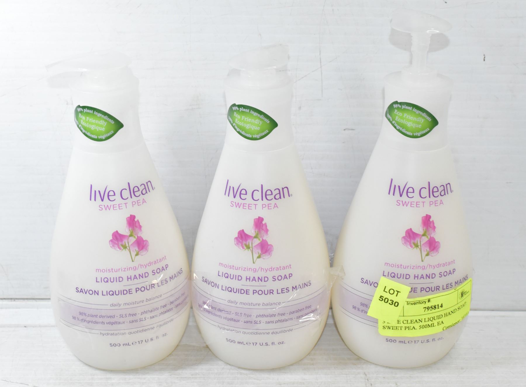 3 LIVE CLEAN LIQUID HAND SOAP: SWEET PEA. 500ML EA