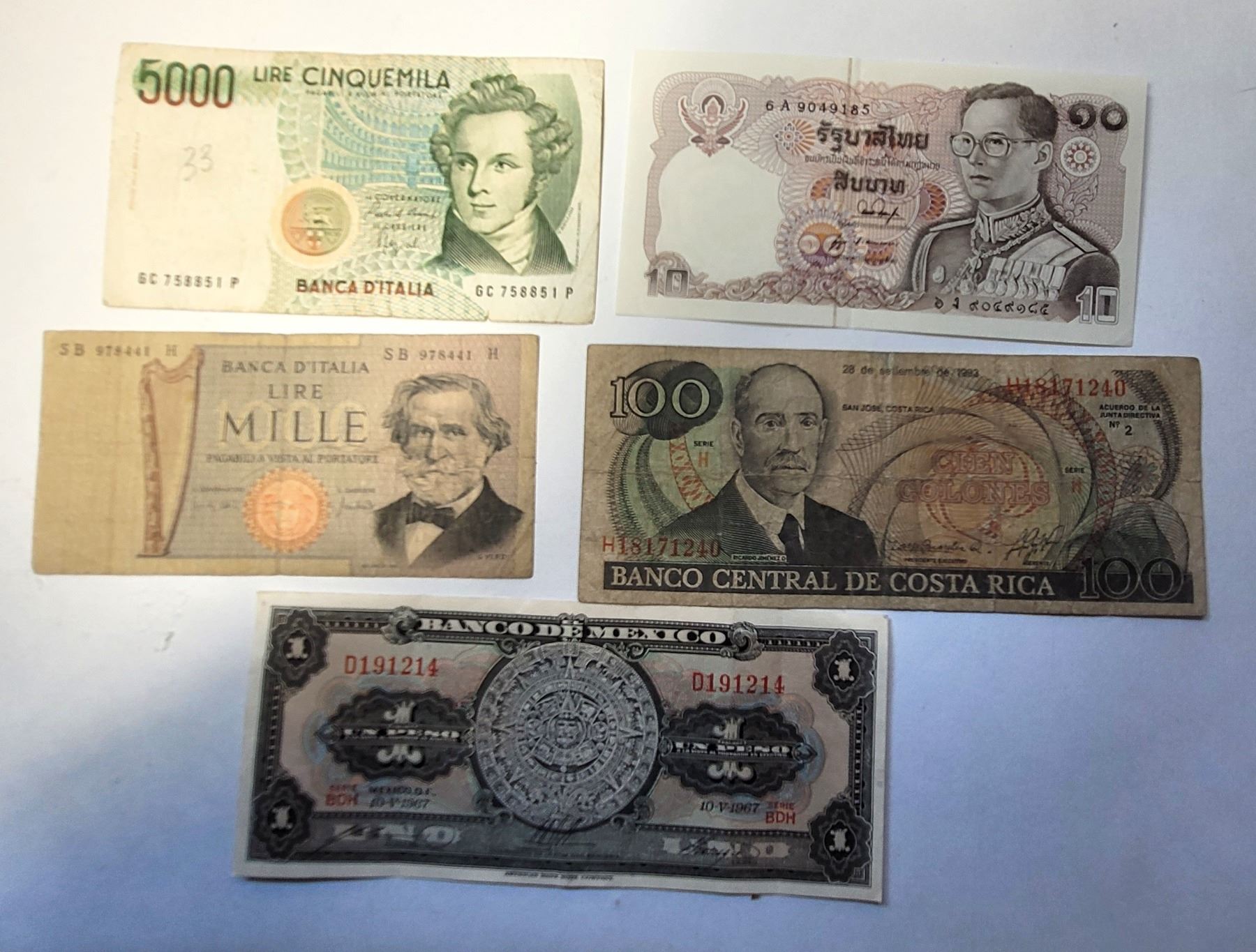 3) LOT OF 5 ASSORTED WORLD BANKNOTES.