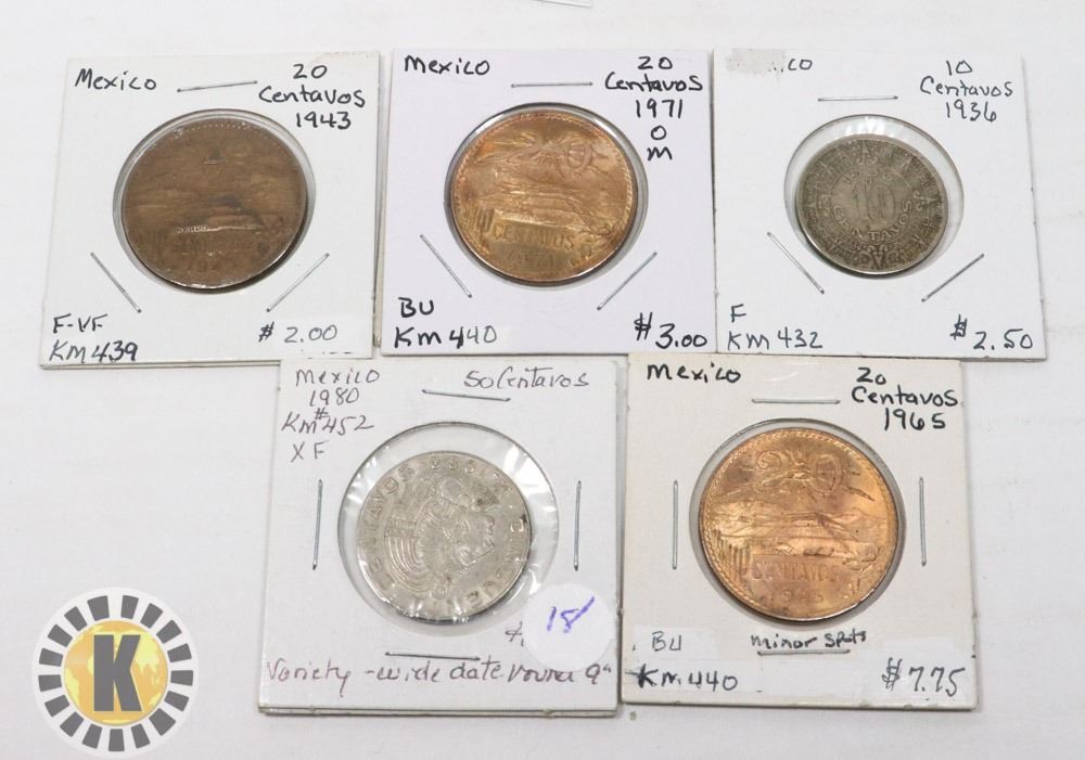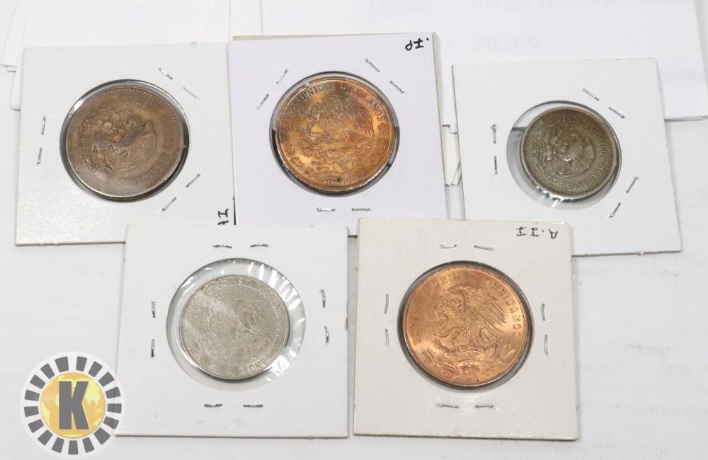 3) LOT OF 5 MEXICAN COINS: 1980 - 50 CENTAVO, 197