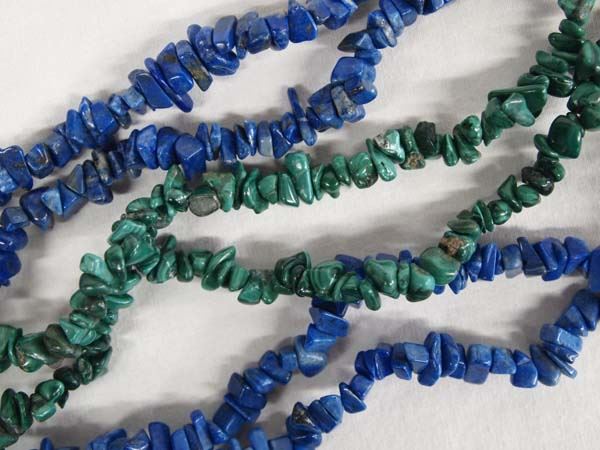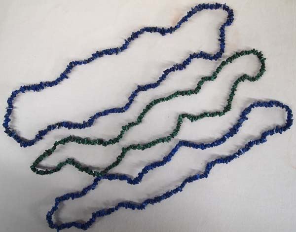 3 Lapis and Malachite Nugget Necklaces, longest measures 32'' end to end
