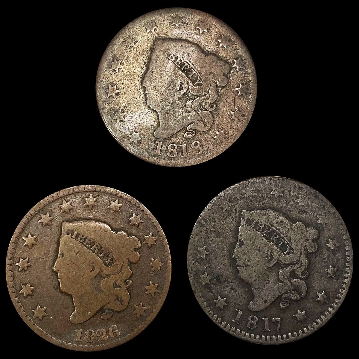 (3) Large Cents (1817, 1818, 1826) NICELY CIRCULAT