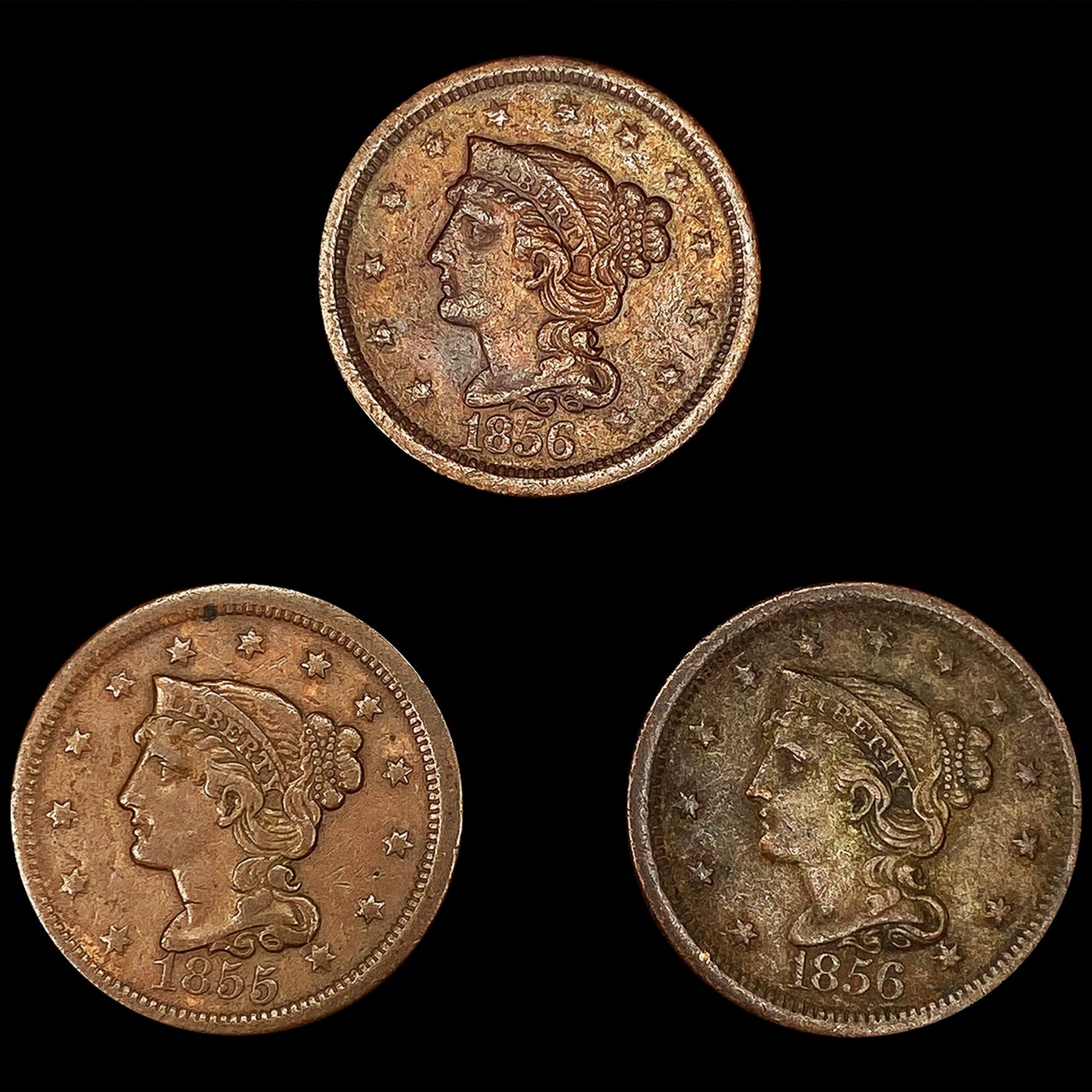 (3) Large Cents (1855 (2) 1856) LIGHTLY CIRCULATED