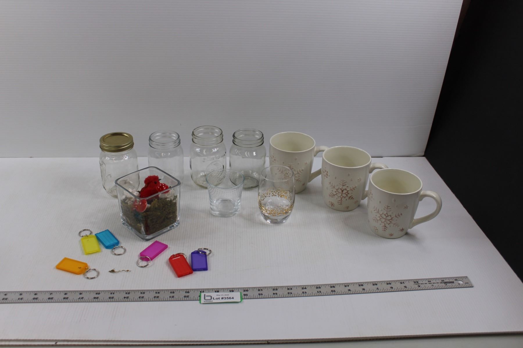 (3) Large Mugs, (4) Mason Jars, (6) Key Tags, (2) Glasses & Kitchen/Ho, Decor.
