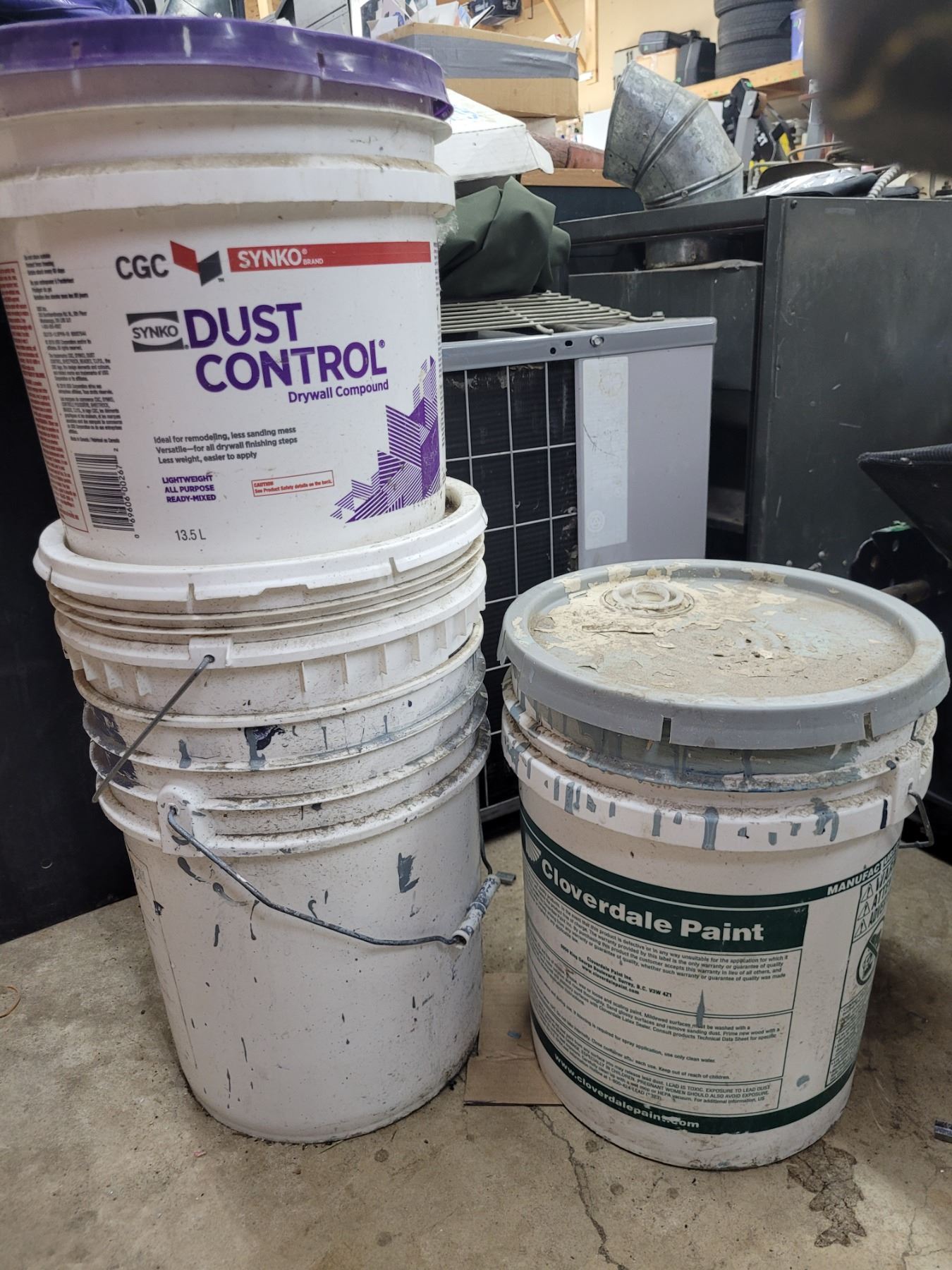 3 Large Pails of Renovation & Construction Drywall, Paint