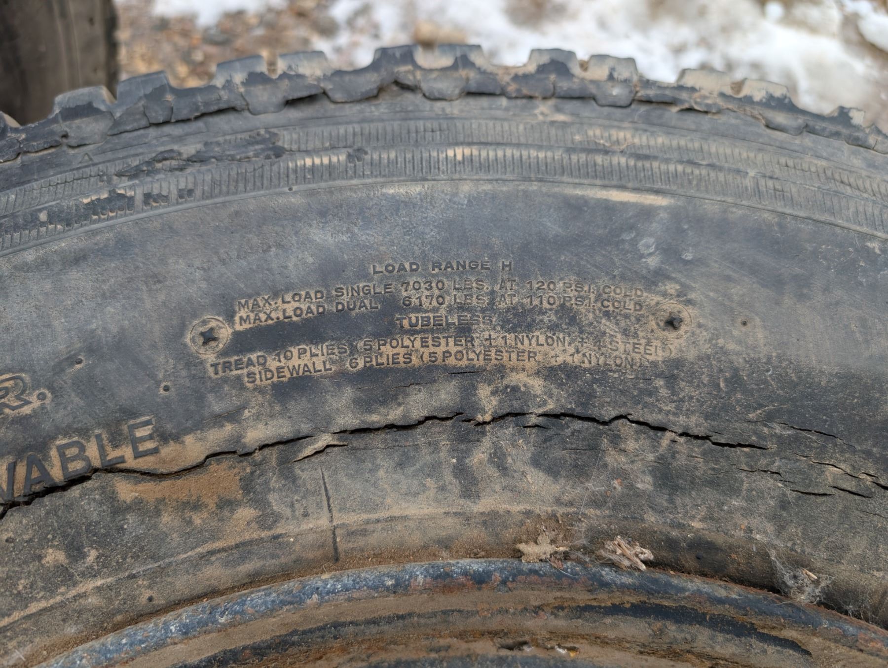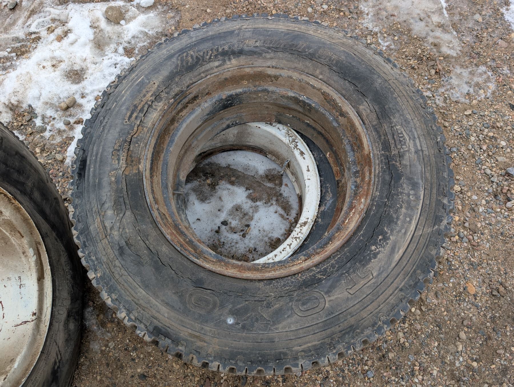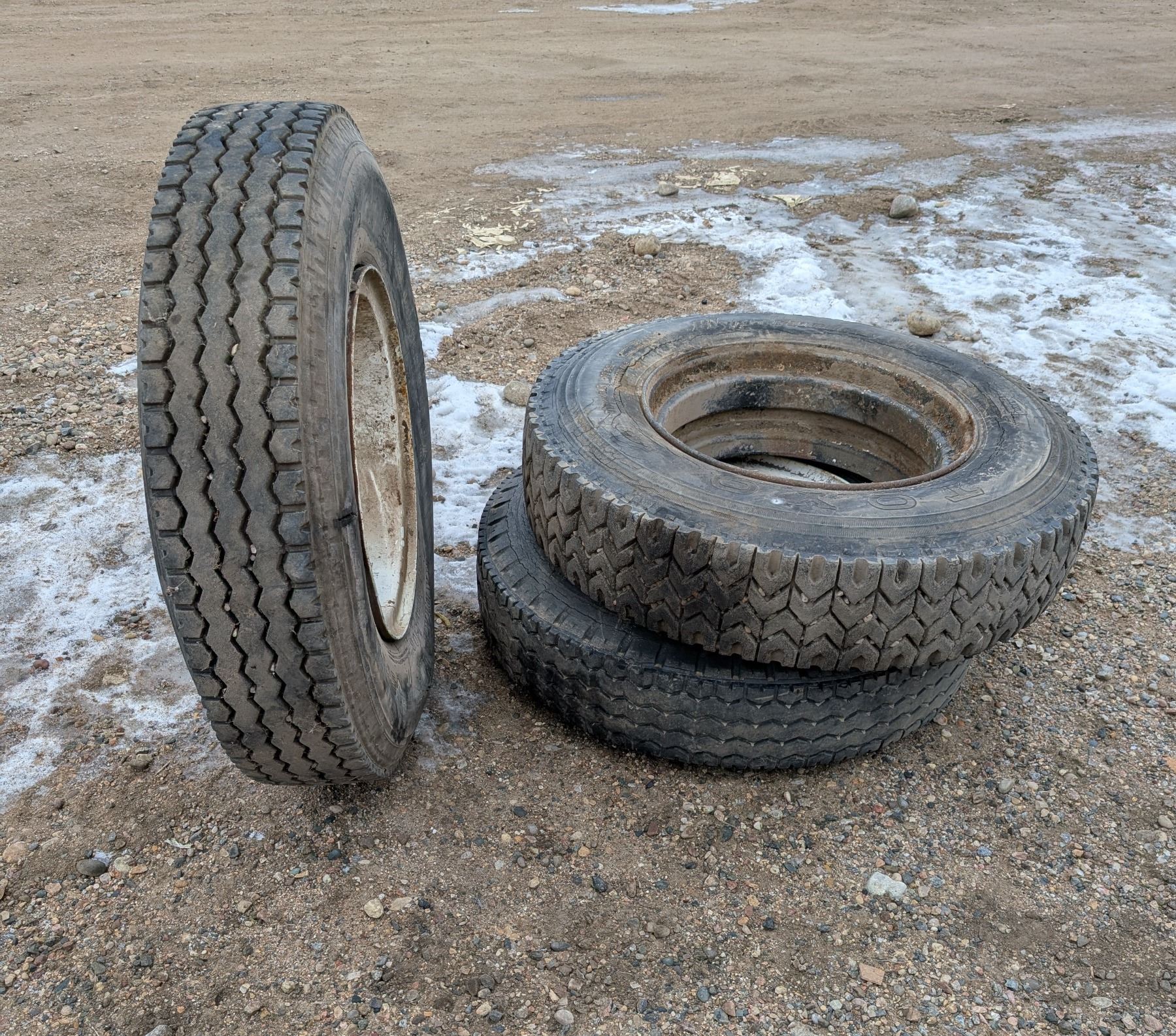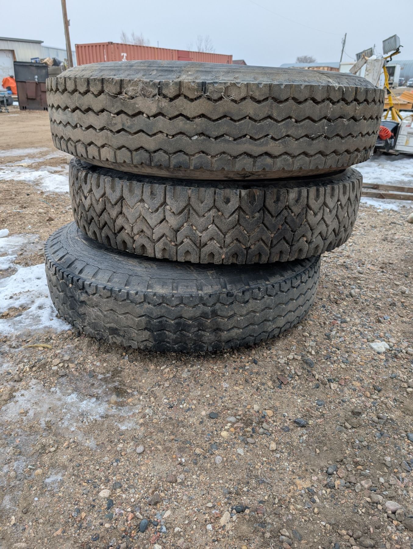 (3) Large Tires (2) Bridgestone 11.00R22 H 16 PR (1) TOYO 11R24.5 16 PR