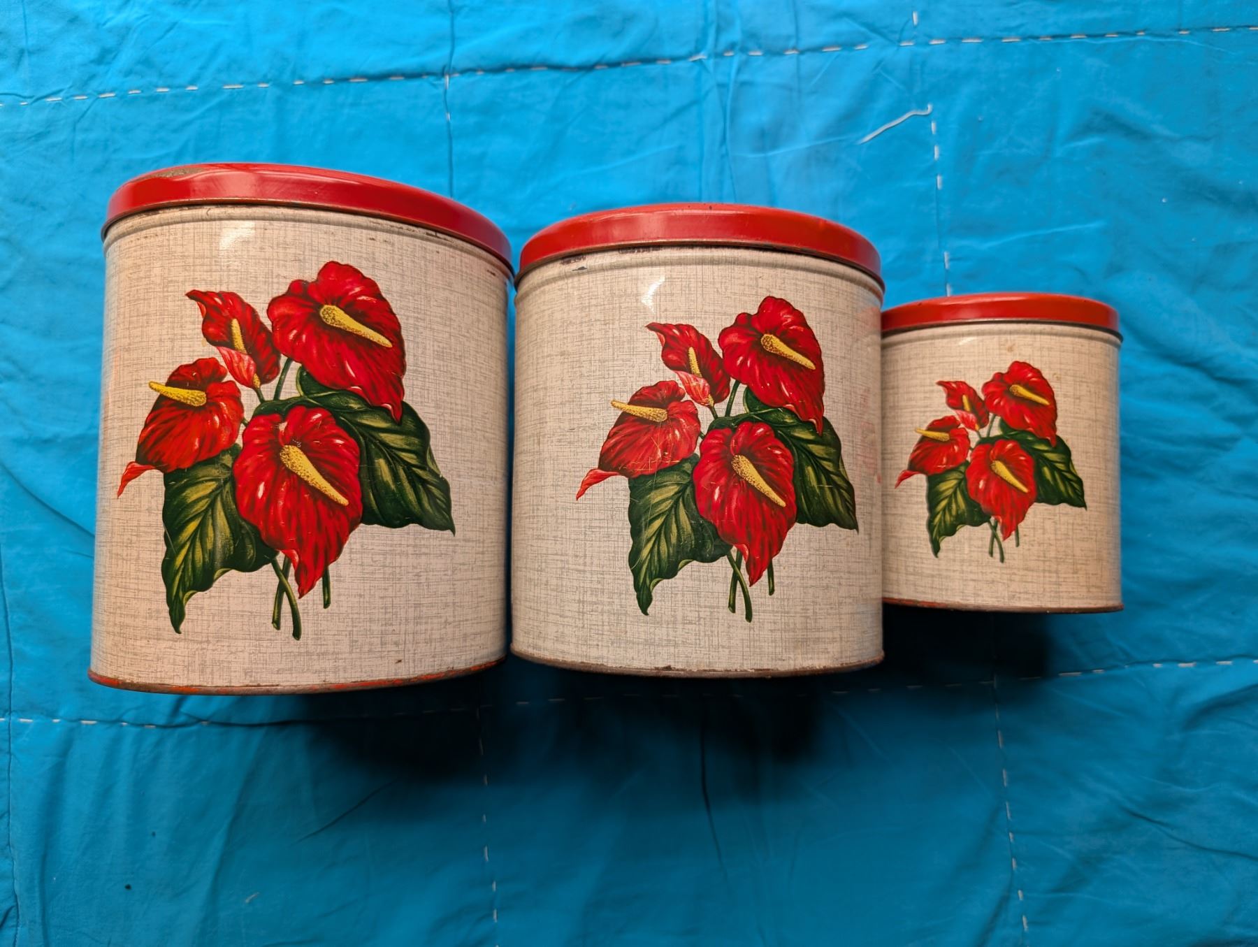 (3) Large To Small Vintage Containers w/ Floral Design (Deco ware)
