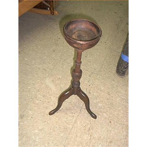 3 Legged Slipper Foot nut Bowl Stand. Very nicely carved piece and it is old, and still in very solid shape, and looks like it is Oak and Mahogany. It is 22.5" H X 11" W and the bowl on top is 6.25" Diam. It is a real nice older style one, and does have the slipper foot legs on it, with a nicely carved piece. Really different and I like it a lot. It is very sturdy one, and will polish up real nice. It is also a very cute one. Hope you like it to. It does show it's age, and beautiful detail carved work & still in great shape. Fits just about anywhere, and stands out, it is that cute. Don't miss it, as we lowered the reserve, so now it goes. Enjoy.