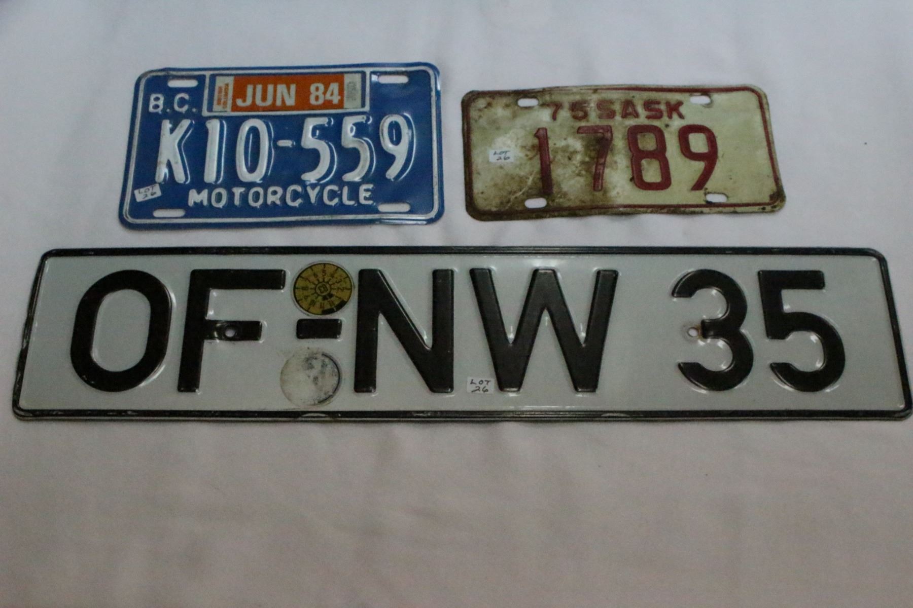 3 License Plates ( 1975 SK, BC Motorcycle & Foreign?)
