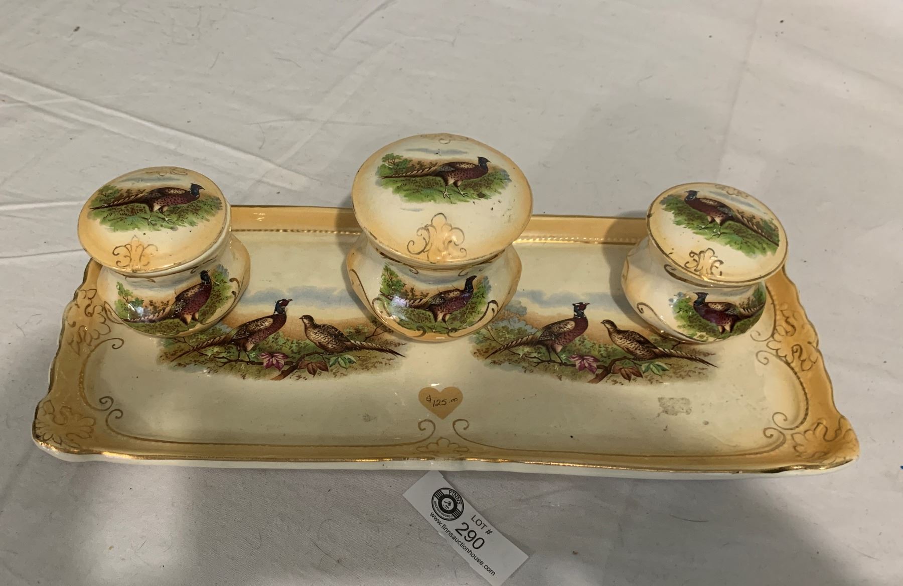 3 Lidded Pots with Pheasant on them with a Severing Tray. Very Nice.