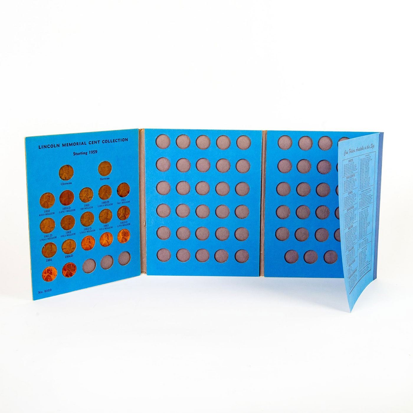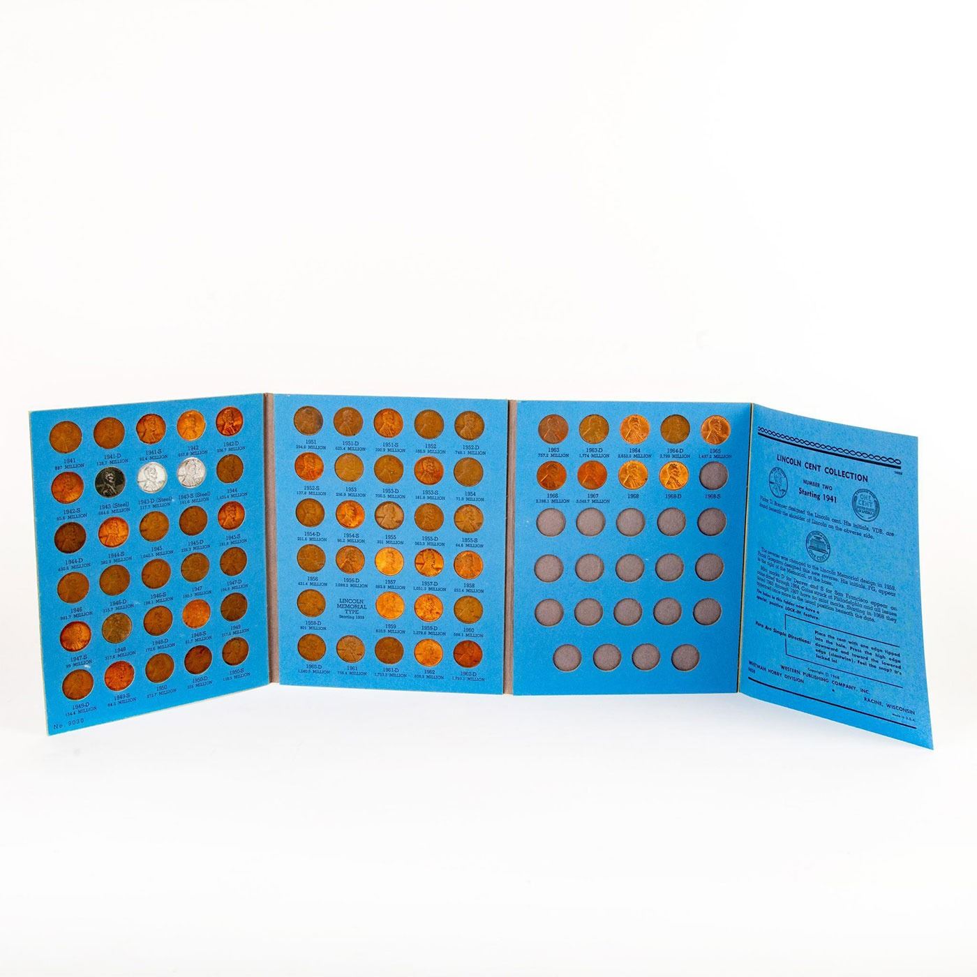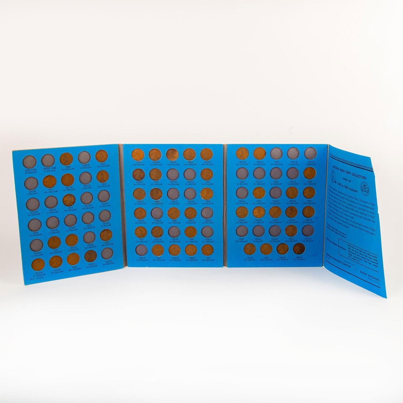 A group of albums for collecting Lincoln Head Cent copper and steel pennies. Mostly filled but incomplete books. Condition of coins vary. Coins and Currency, Numismatists