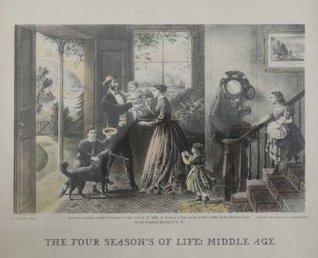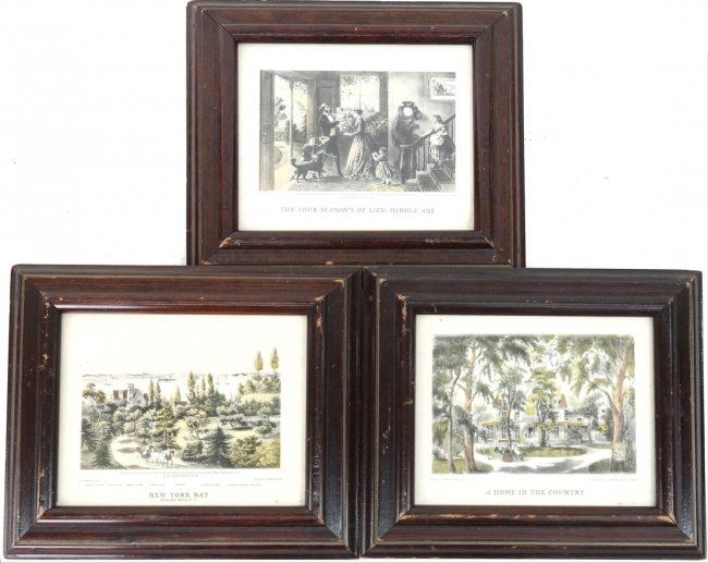 1) "Home in the Country" 2) "New York Bay" 3) "The Four Seasons of Life: Middle Age". [Sight: 5" x 6"; Frame: 8" x 9"]. Fair, unexamined out of frame.