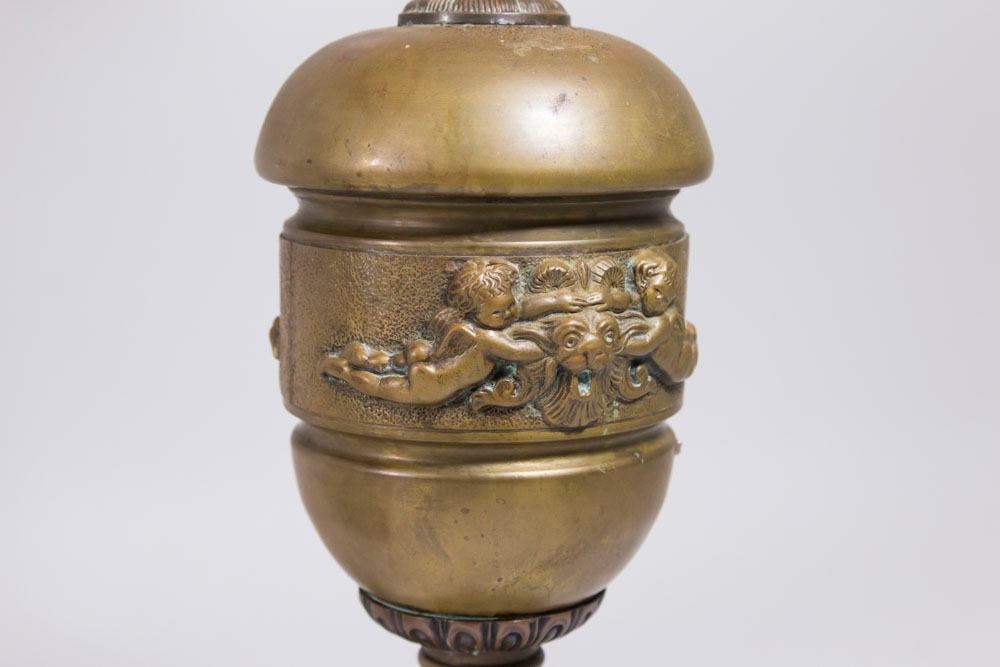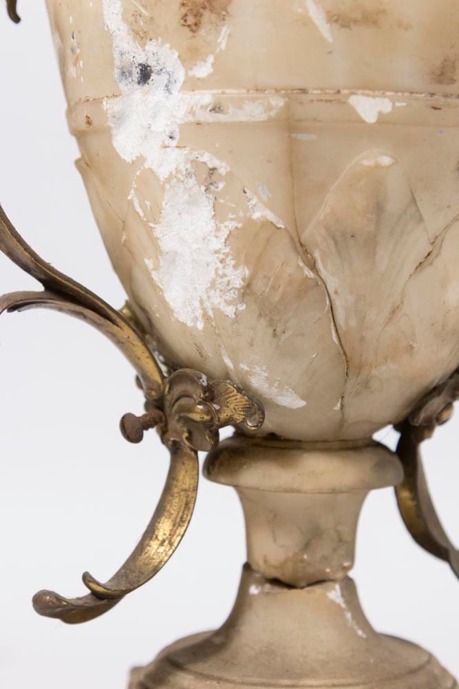 Largest approx. 28" H. (SL590, 091499K, WoH) Alabaster lamp cracked missing pieces.