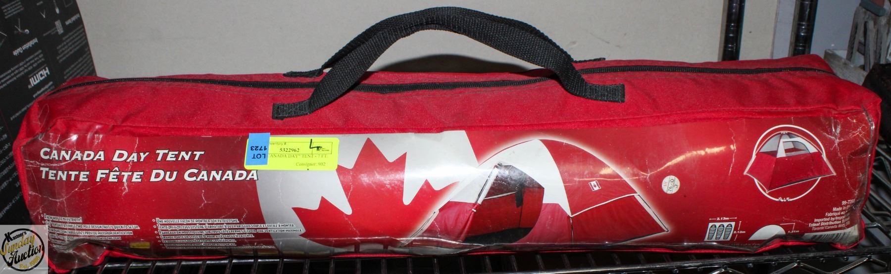 7 FT. WIDE X 4 FT. HIGH - RED AND WHITE WITH CANADA FLAG, 2 POLE QUICK SET-UP DOME-STYLE TENT **ALL ITEMS MUST BE REMOVED BY 5PM SATURDAY, MAY 31ST 2025. ALL REMAINING ITEMS WILL BE SUBJECT TO A $6.00 PER DAY STORAGE CHARGE. ANY ITEMS REMAINING AFTER MONDAY, JUNE 16TH 2025 WILL BE CONSIDERED FORFEITED. NO REFUNDS WILL BE ISSUED FOR FORFEITED ITEMS. TO SCHEDULE A PICK UP APPOINTMENT CLICK HERE